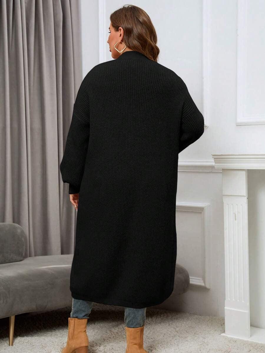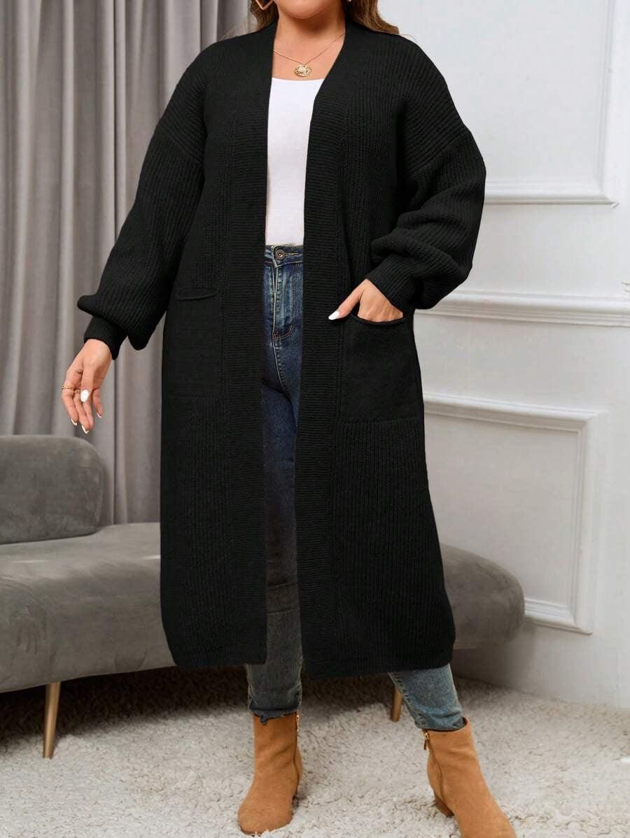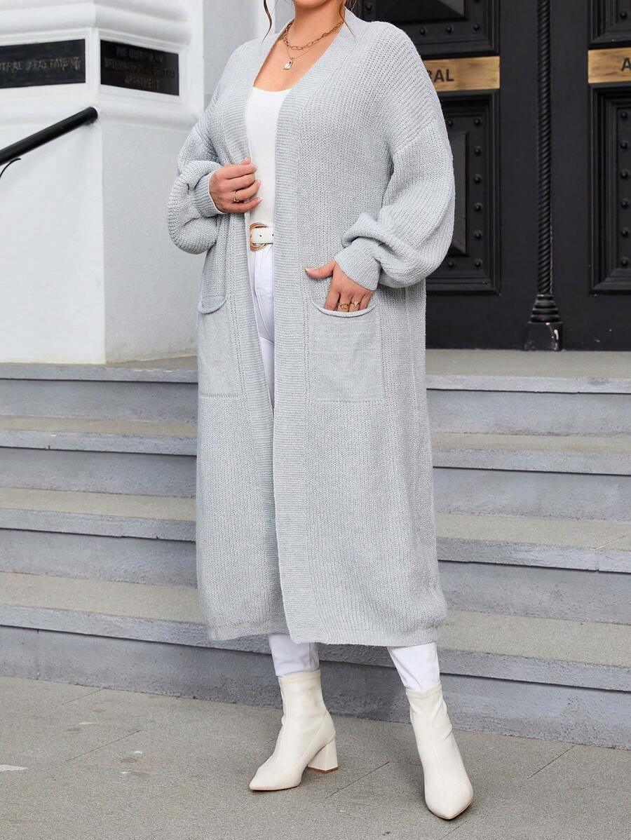 The Regular Fit Knitwear construction allows this piece to pair with multiple base layers, from basic tees to fitted turtlenecks. The Open Front Knitwear layout offers versatility for quick layering, while the midi length provides added coverage for cooler days. Its plain texture and dual pockets create a streamlined look suitable for both indoor and outdoor outfits. The Simple Knit Outerwear design keeps the styling process easy without adding unnecessary detail or weight.
