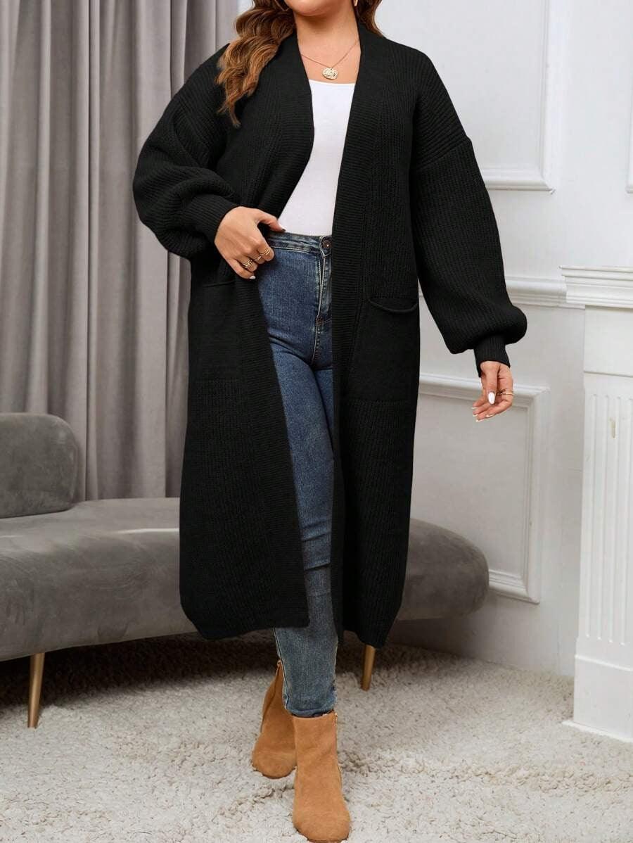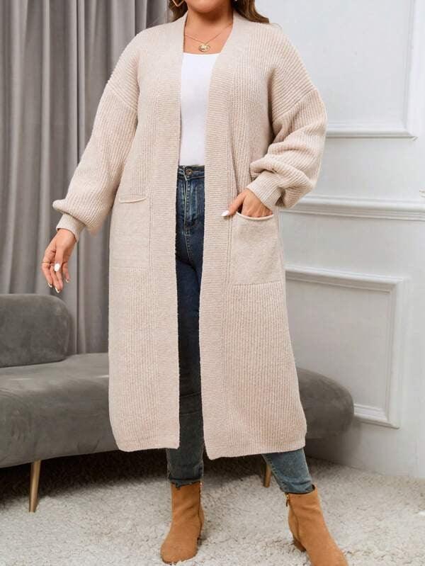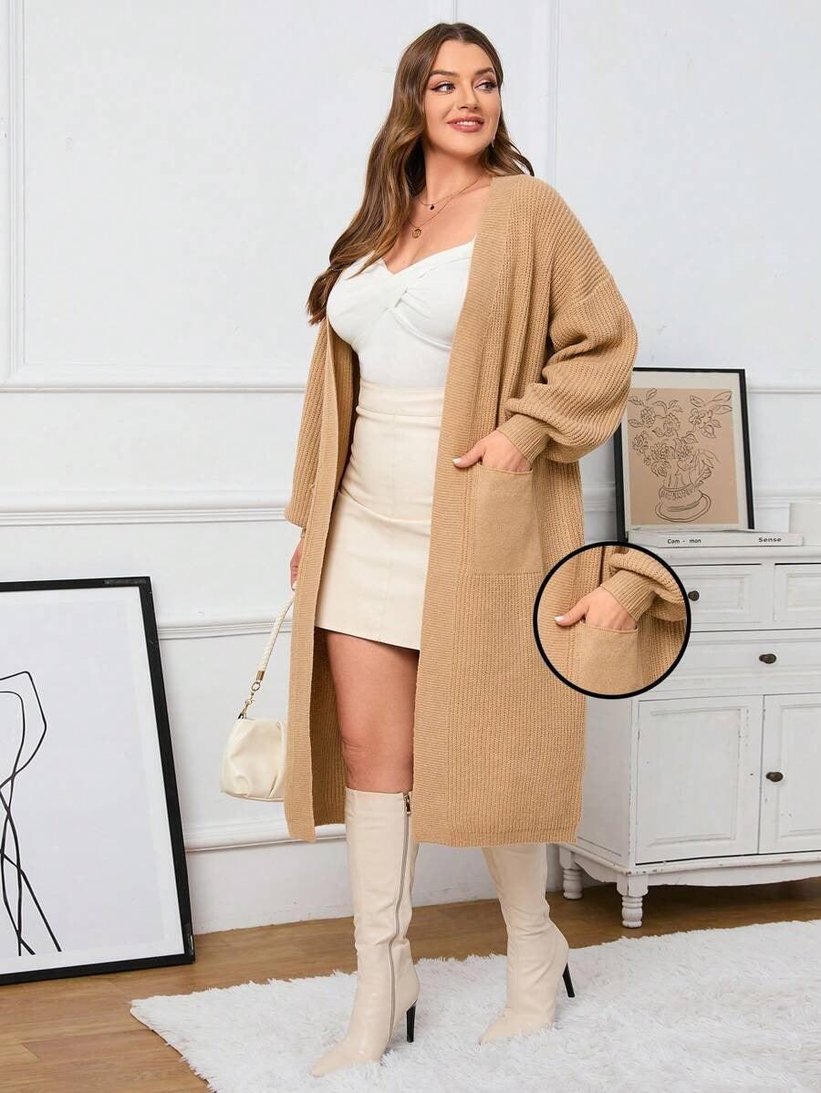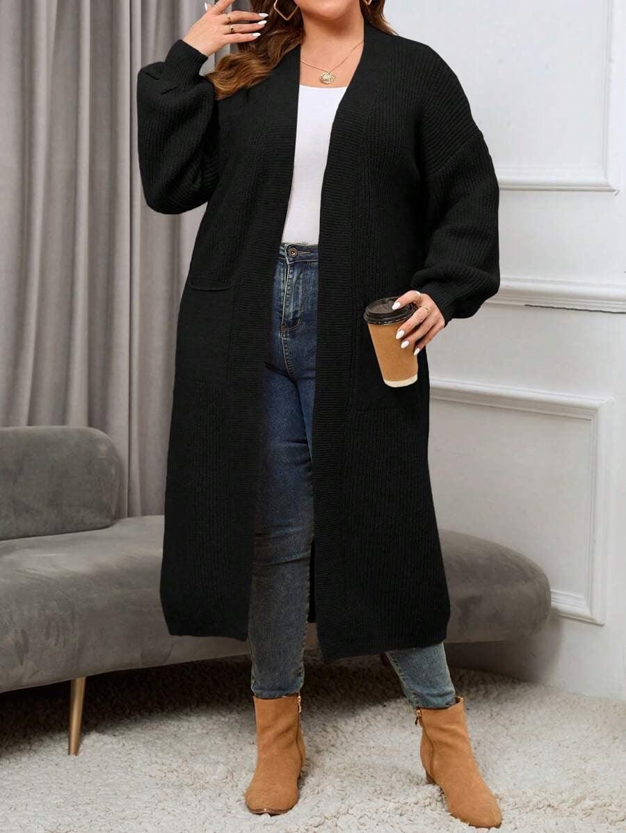 The Regular Fit Knitwear construction allows this piece to pair with multiple base layers, from basic tees to fitted turtlenecks. The Open Front Knitwear layout offers versatility for quick layering, while the midi length provides added coverage for cooler days. Its plain texture and dual pockets create a streamlined look suitable for both indoor and outdoor outfits. The Simple Knit Outerwear design keeps the styling process easy without adding unnecessary detail or weight.