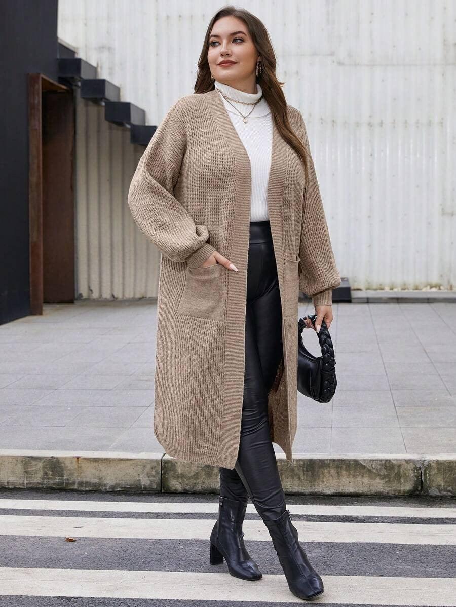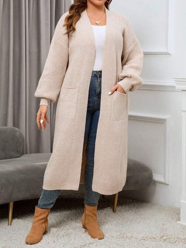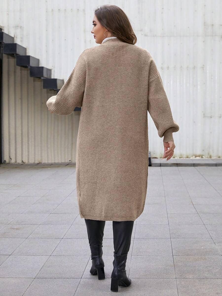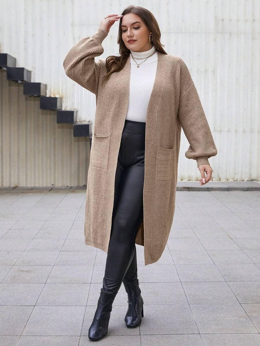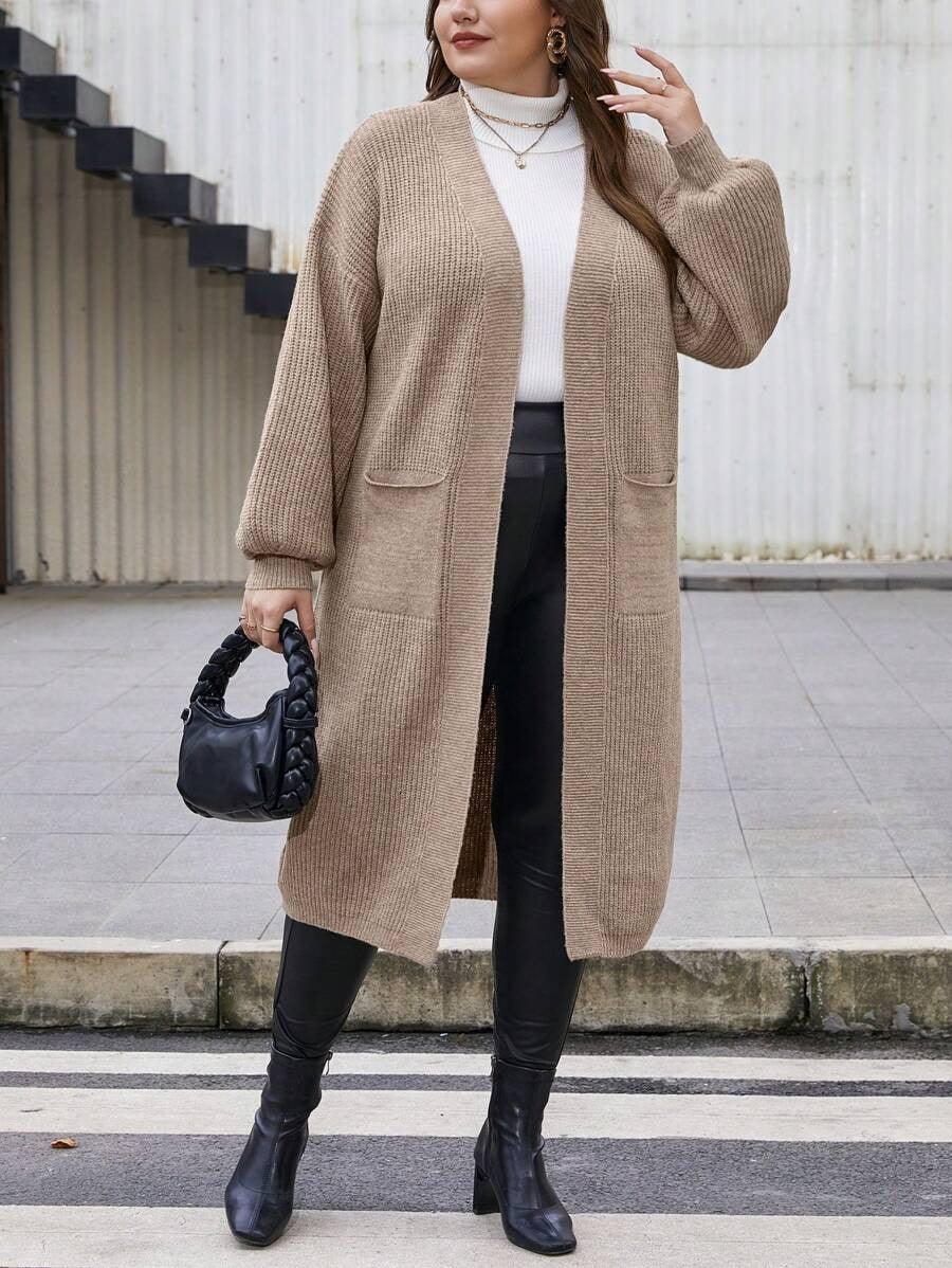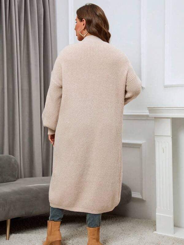 The Long Sleeve Knit Cardigan offers functionality and adaptable design. Its open front and midi length make it easy to add over shirts, tops, or tees. The plain texture allows this piece to act as a quiet base or subtle layer without drawing too much attention. The design leans casual but remains polished enough for more styled settings.