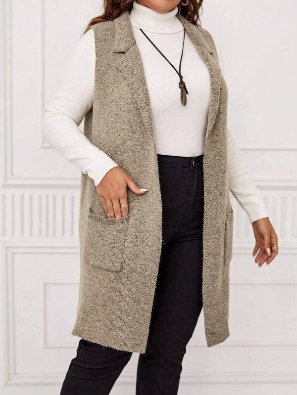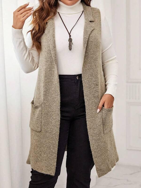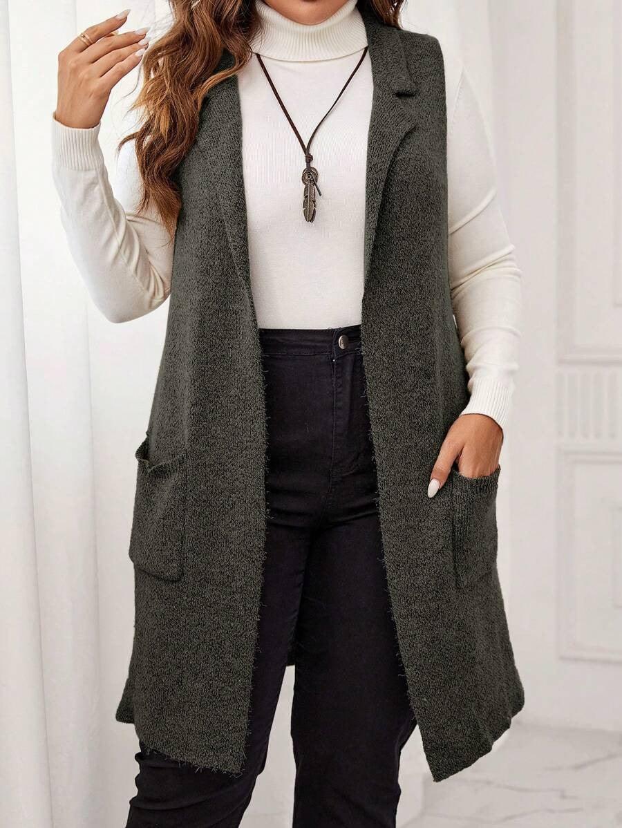 The Dual Pocket Open Front Vest Cardigan offers a structured layer for modern routines. With its sleeveless design, soft knit texture, and dual pocket layout, it supports modular wear without excess weight.