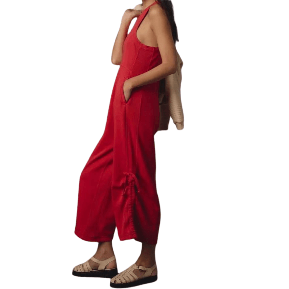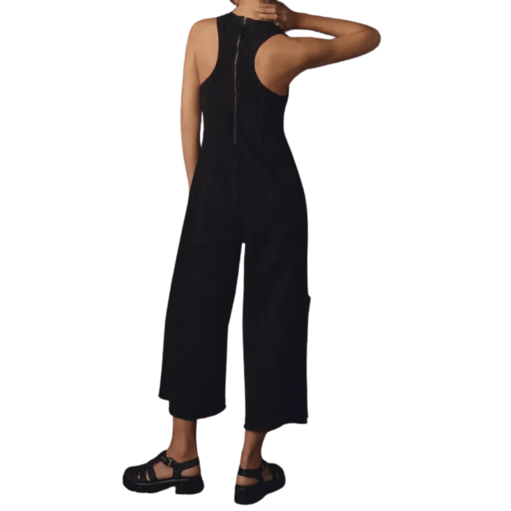 The jumpsuit for women maintains an easy-to-style profile, allowing for diverse footwear and layering combinations. It delivers a clean, architectural look while offering a draped silhouette one-piece that moves naturally.