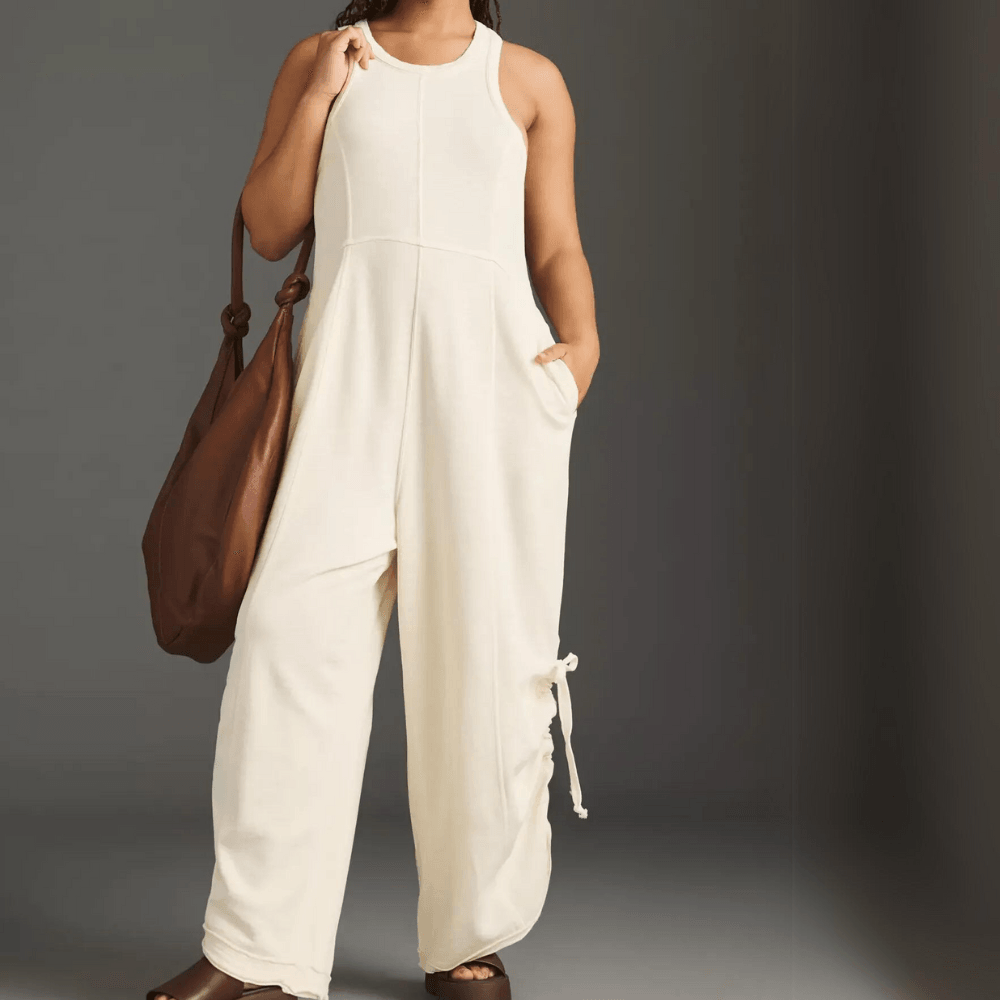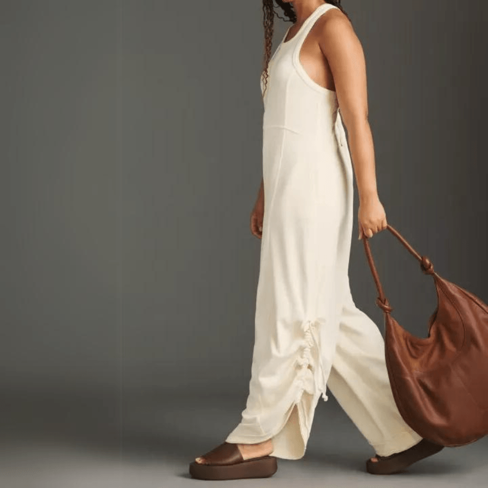 Unlike form-fitting alternatives, this loose fit one-piece prioritizes clean lines and uninterrupted flow. Whether styled with bold accessories or worn solo, this oversized style jumpsuit allows for self-expression through simplicity.