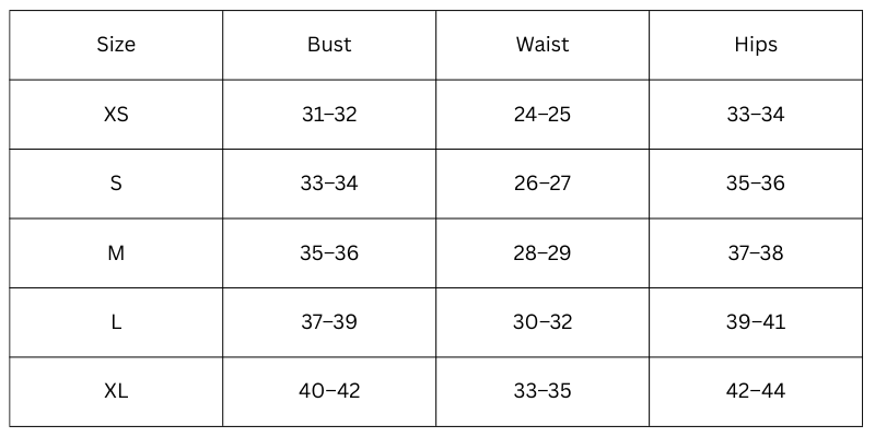 Size Chart (Inches):