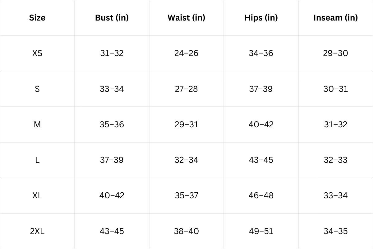 Size Chart (Inches):