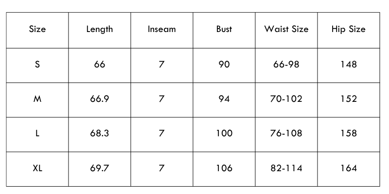 Size Chart (inches):