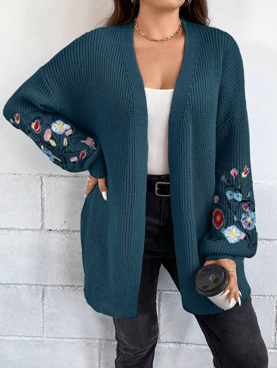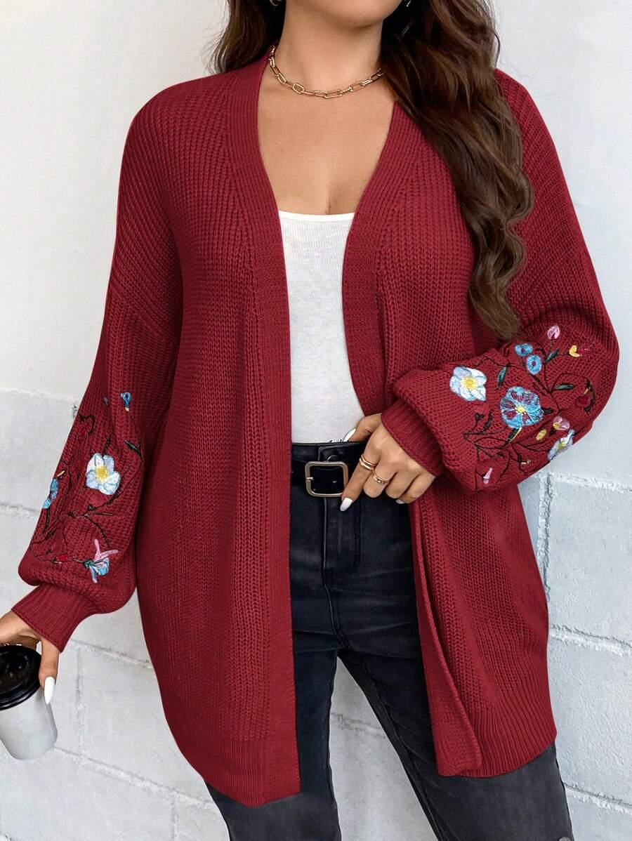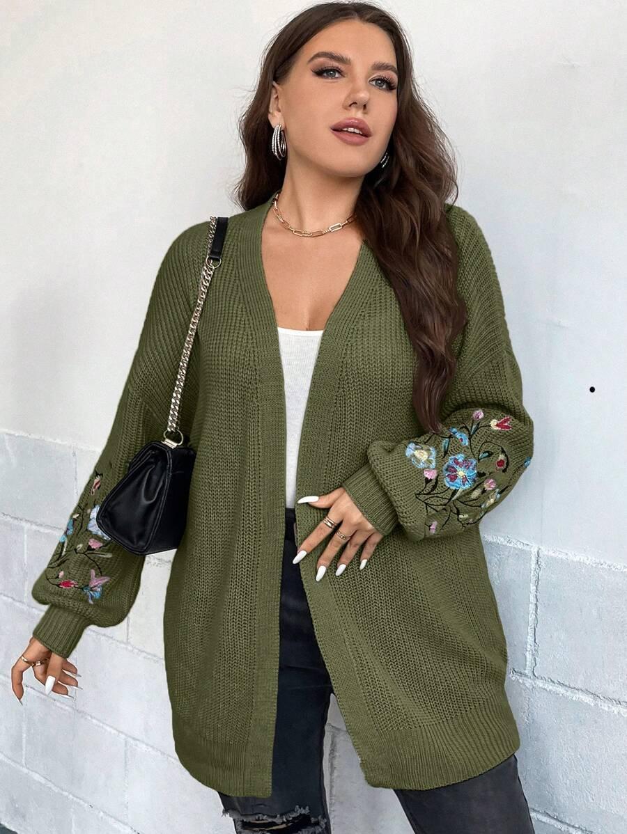 Bring ease to your wardrobe with the Floral Embroidery Duster Plus Cardigan, a structured layering piece created for seasonal shifts. With its light construction and floral stitchwork, this cardigan complements various outfits without excess weight. Designed with a focus on adaptability, the open silhouette works well from early morning errands to cool evening outings.