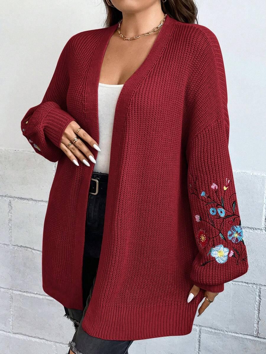 The Floral Embroidery Duster Plus Cardigan delivers straightforward utility with refined detail. Its structured knit design and stitched embellishments combine to support layering without complexity.