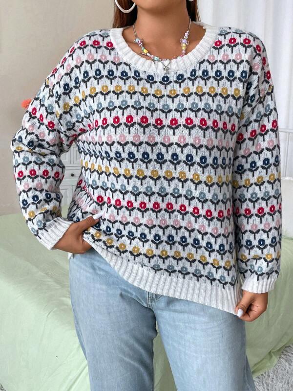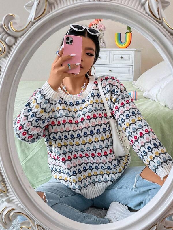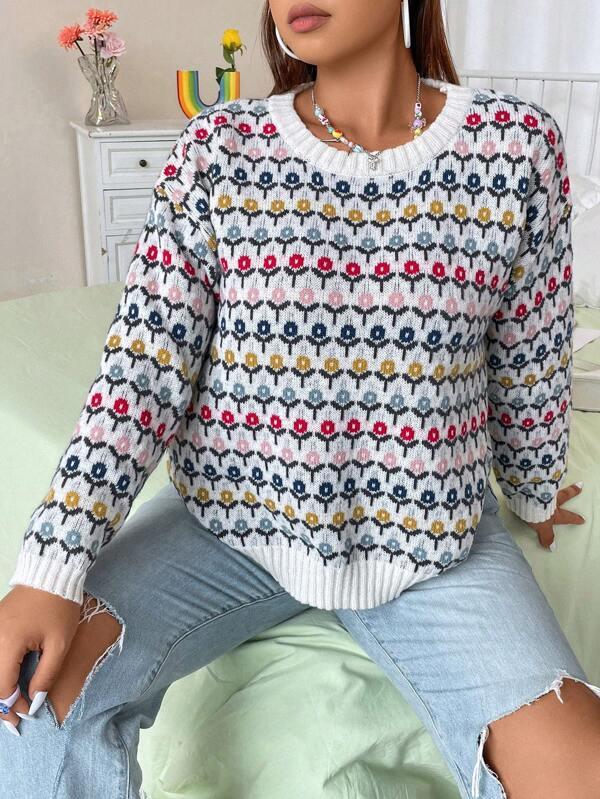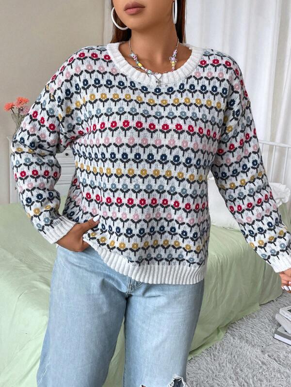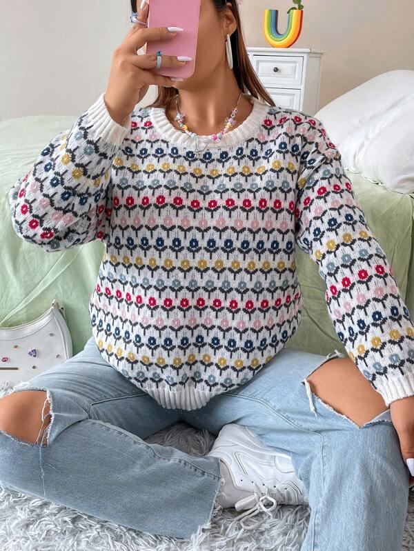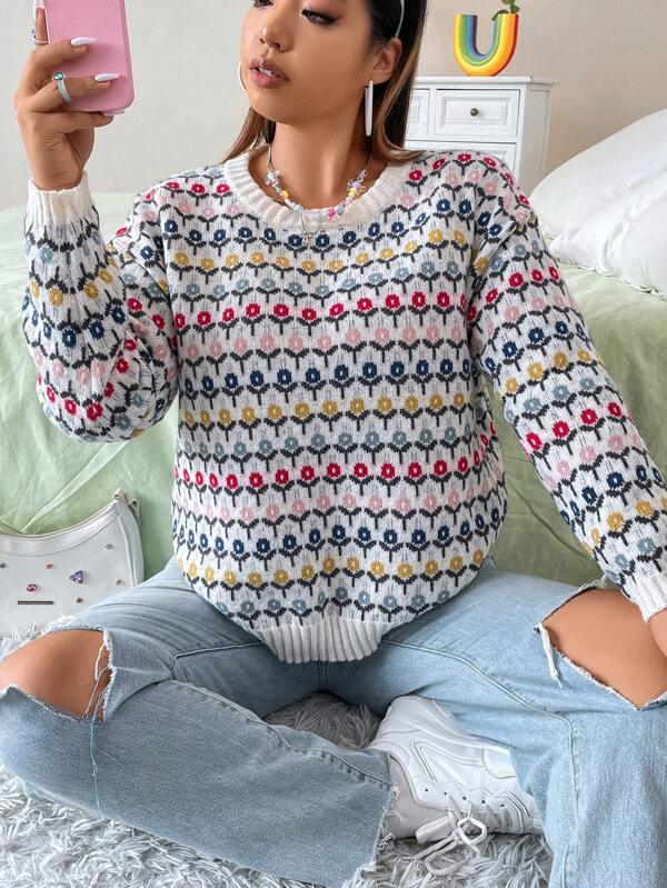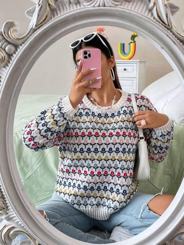 Floral Print Pullover: Features an all-over floral layout that adds gentle design elements to the sweater