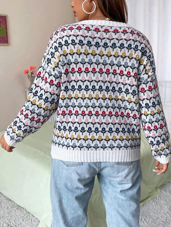 Features of Floral Pattern Knit Sweater