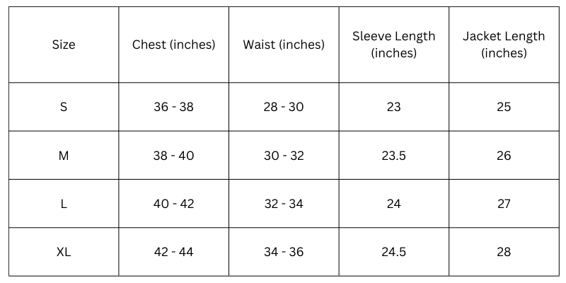 Size Chart(inches):