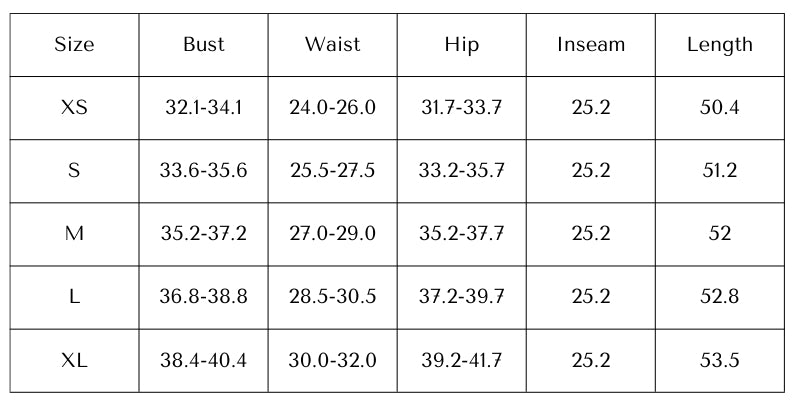Size Chart (inch):