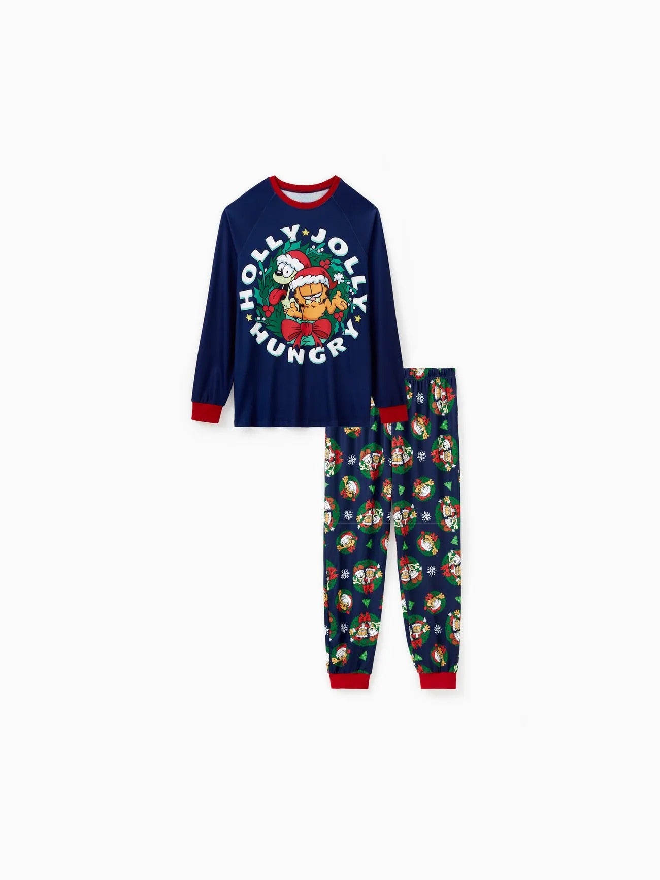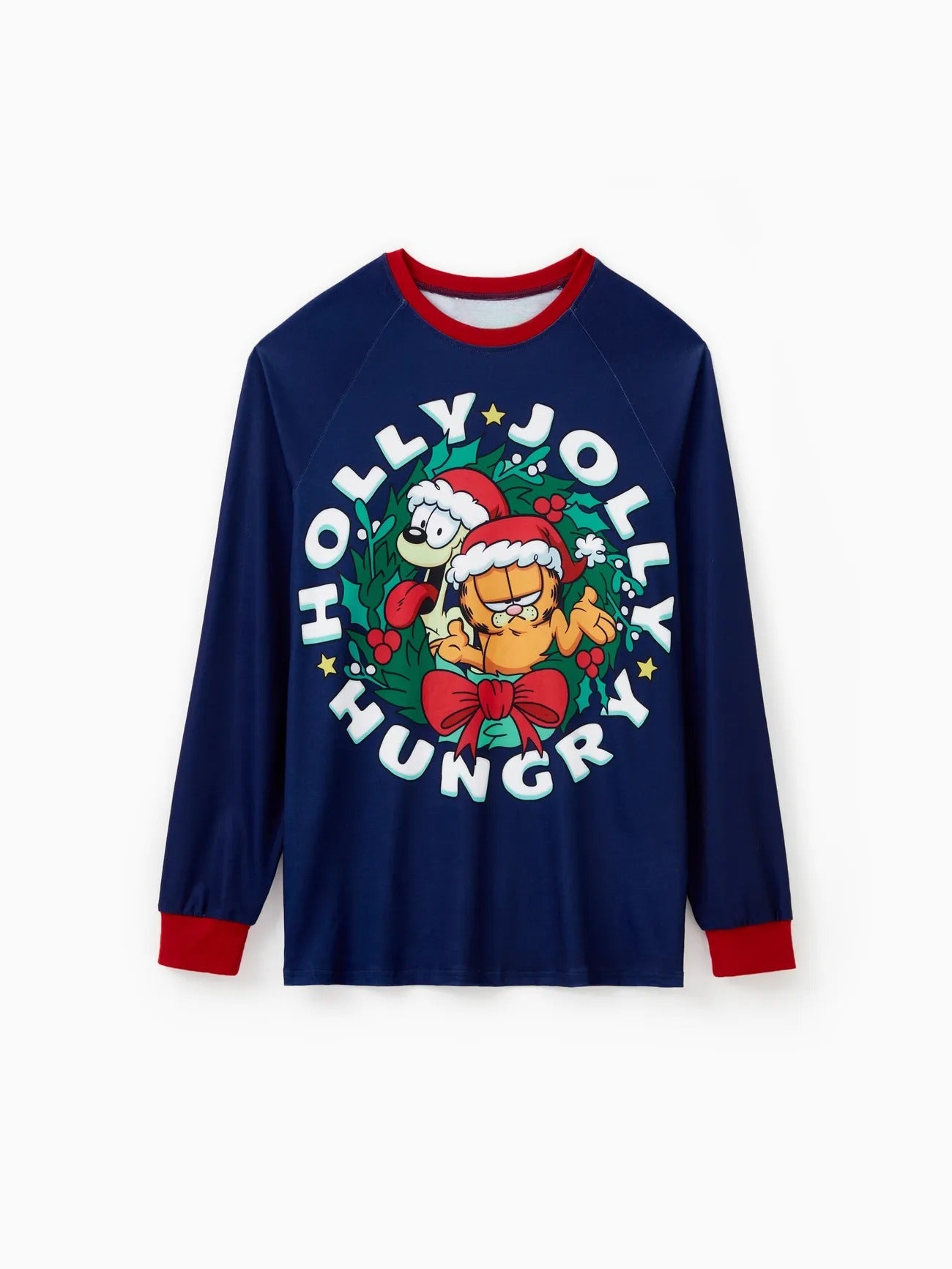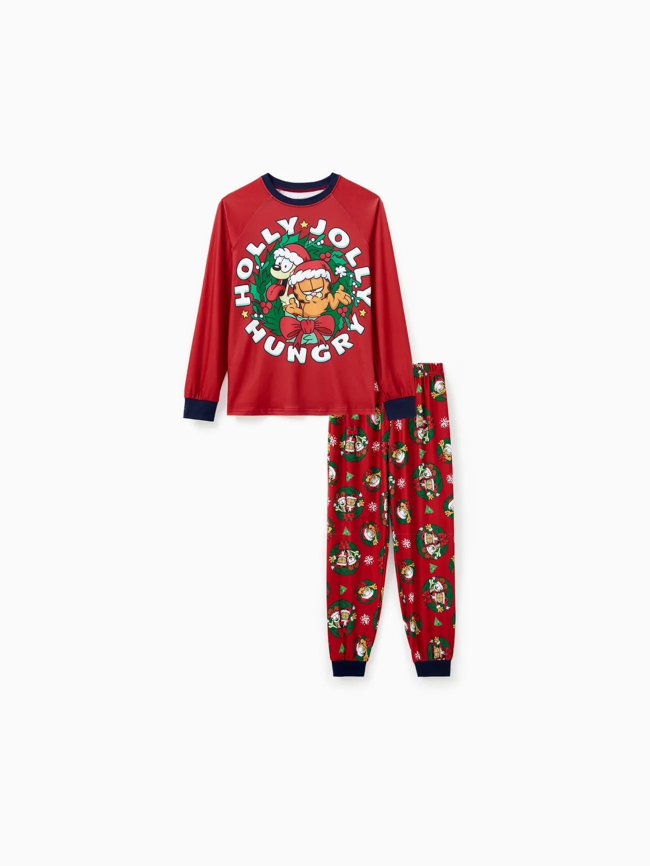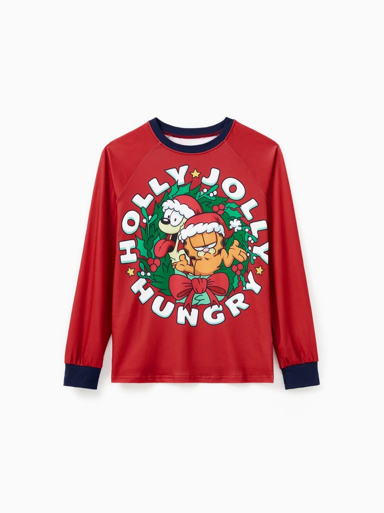 Celebrate in cartoon style with the classic "Holly Jolly Hungry" graphic. Garfield’s holiday appetite and festive vibe come to life on these pajamas, making them a hit with kids and adults alike.