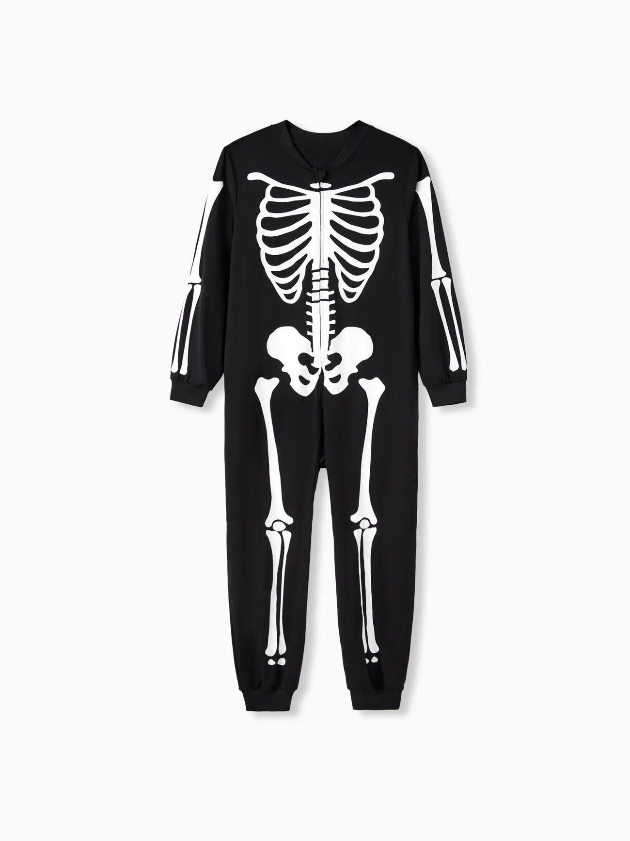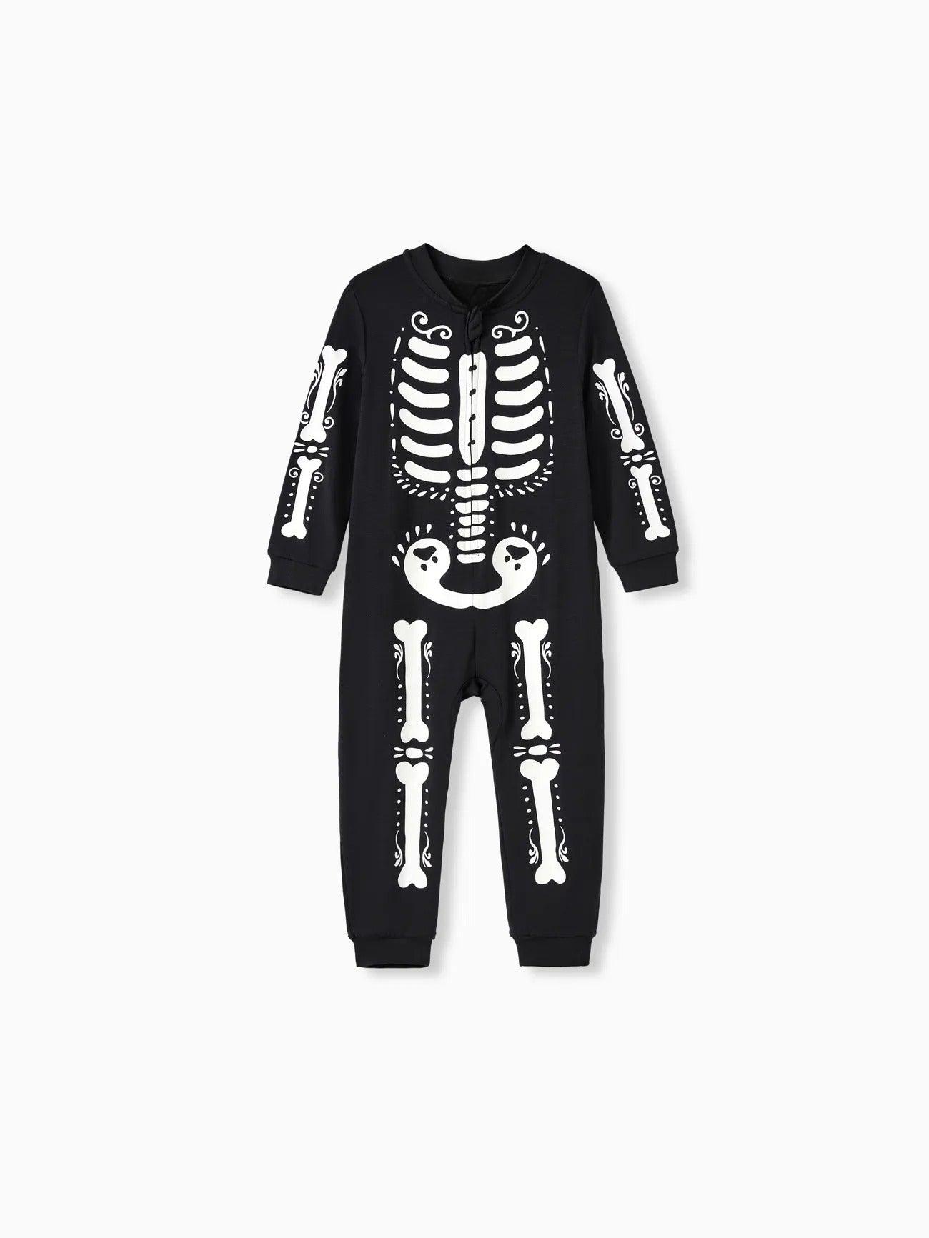 The glow dark family jumpsuit offers one-piece ease. Just zip it and go. Each size fits true and adjusts easily. The fabric has light stretch to support movement. Glow print gives it a fresh twist. The theme stands out beautifully in low light. It works well during fall events. Use for pictures or festive movie nights. Matching jumpsuits make events more fun. This jumpsuit set keeps everyone coordinated. Enjoy time together with soft, all-over ease. The fabric helps reduce itch or stiffness.