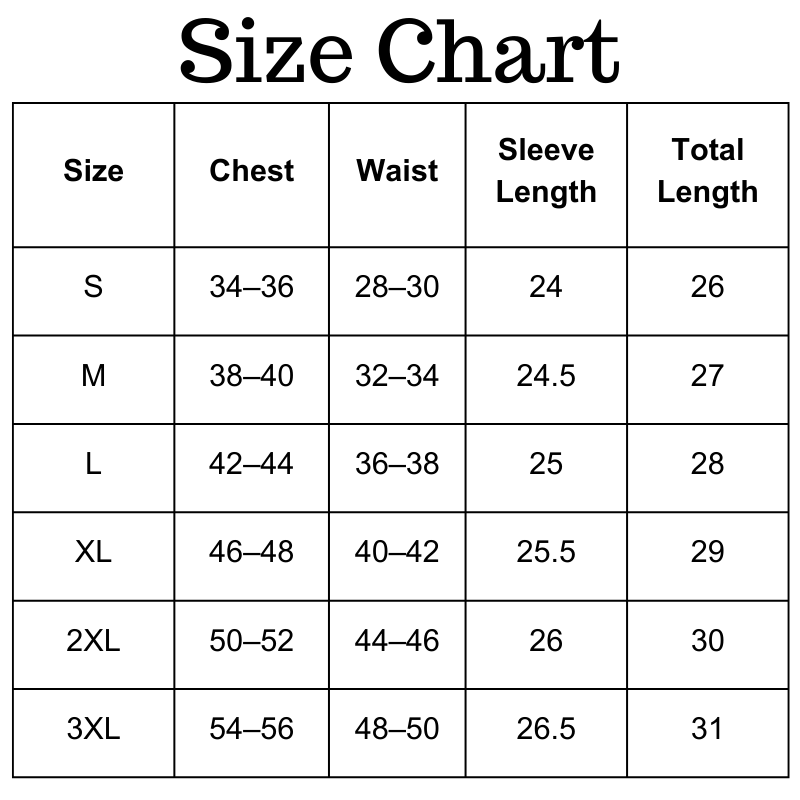 Size Chart(inches):