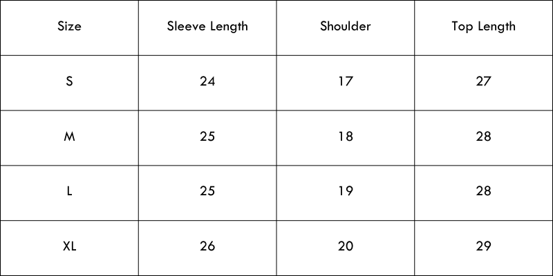 Size Chart(inches):