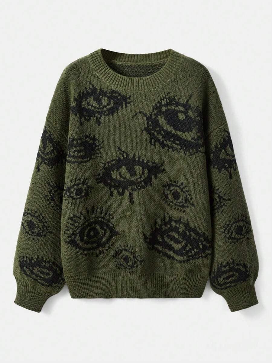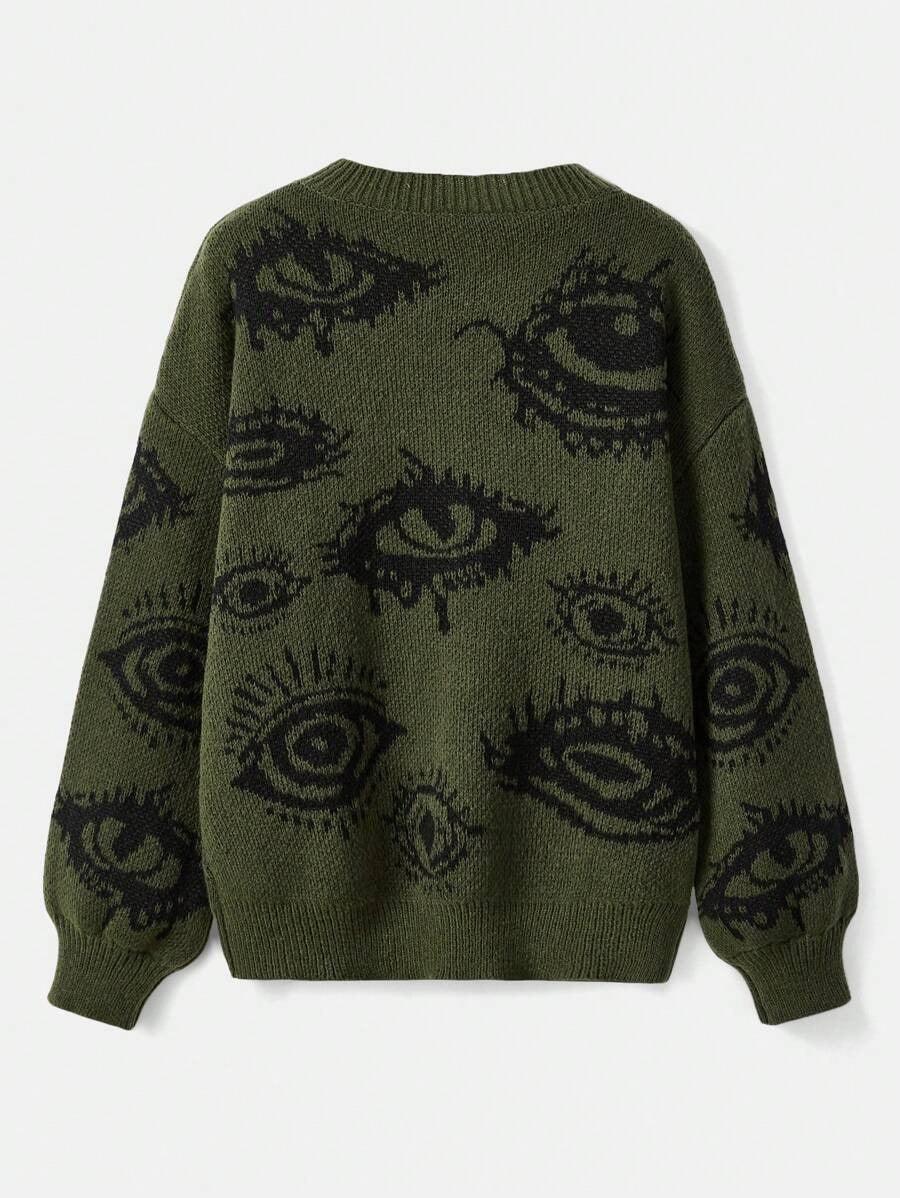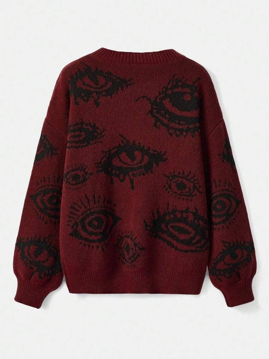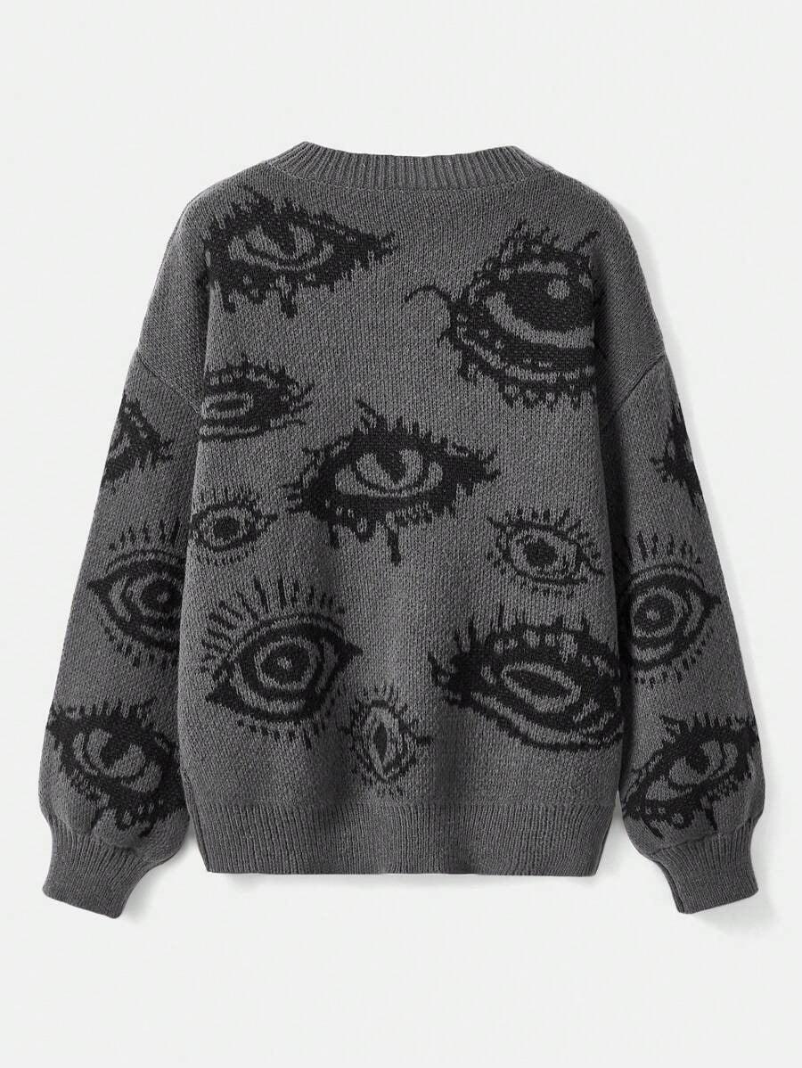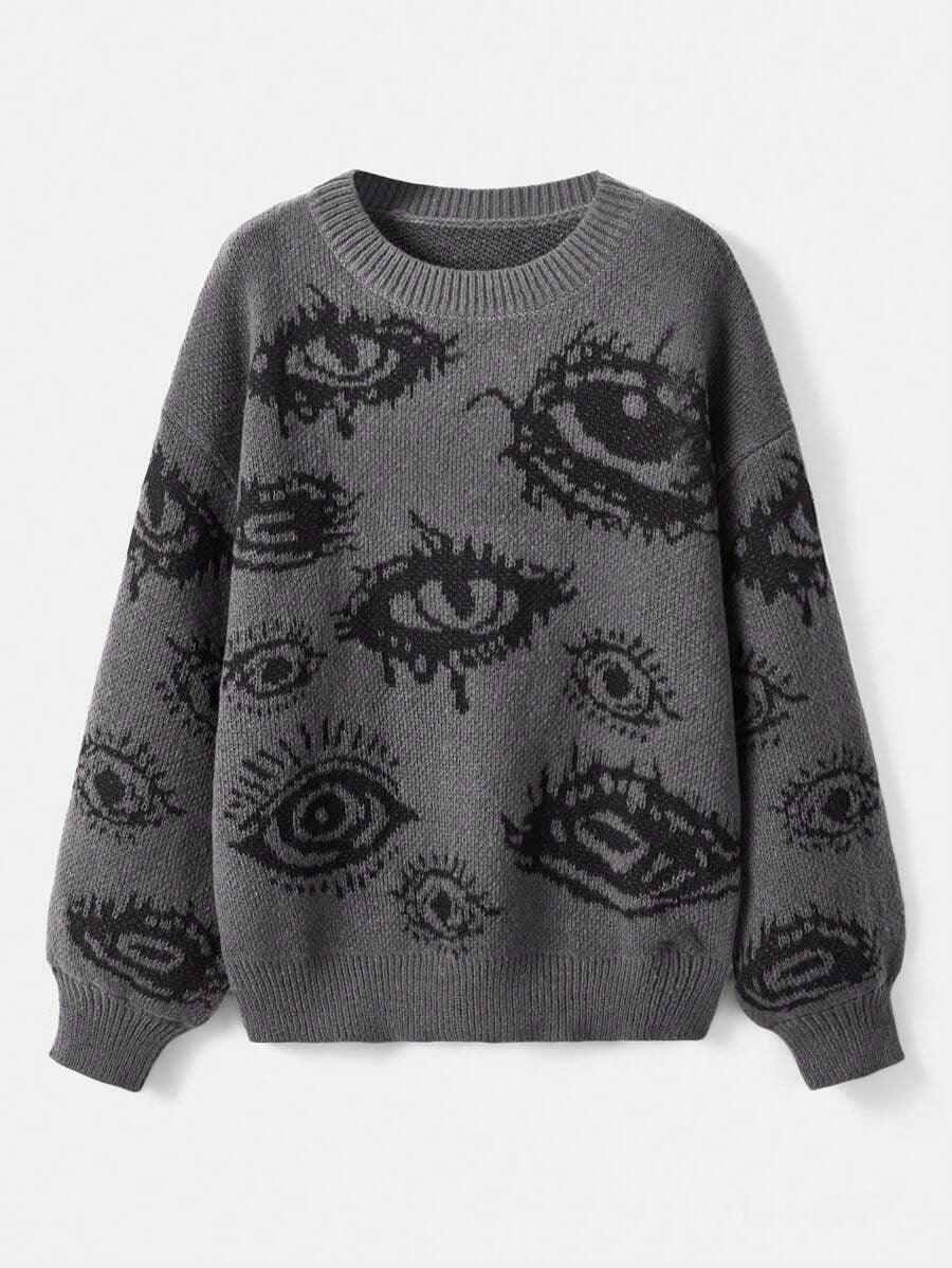 The lash graphic sets a bold tone. It gives the sweater a raw and expressive style. The print matches well with solid pieces.