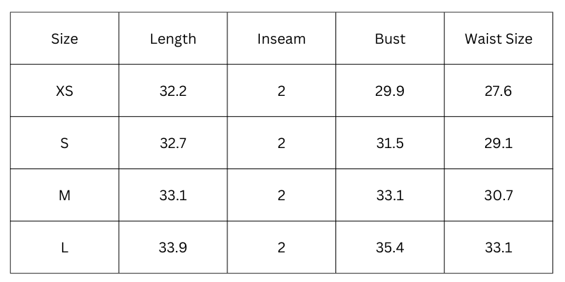 Size Chart (inches):