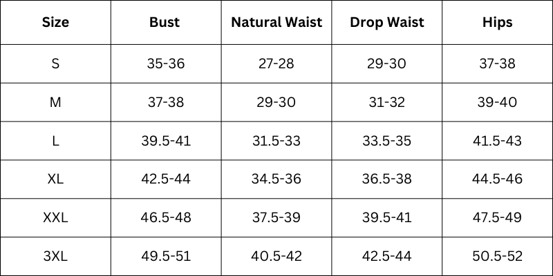 Size Chart (inches):