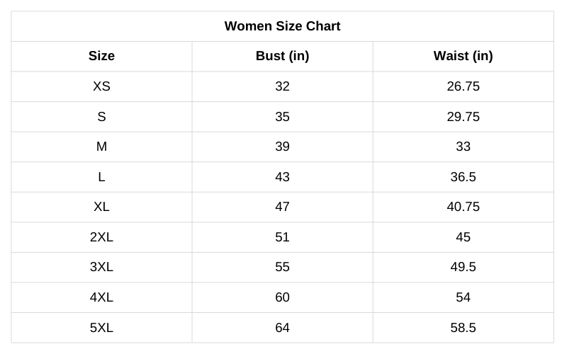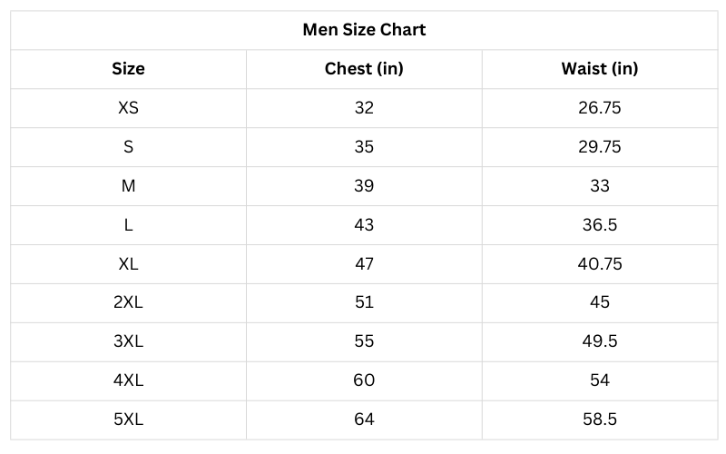 Size Chart (Inches):