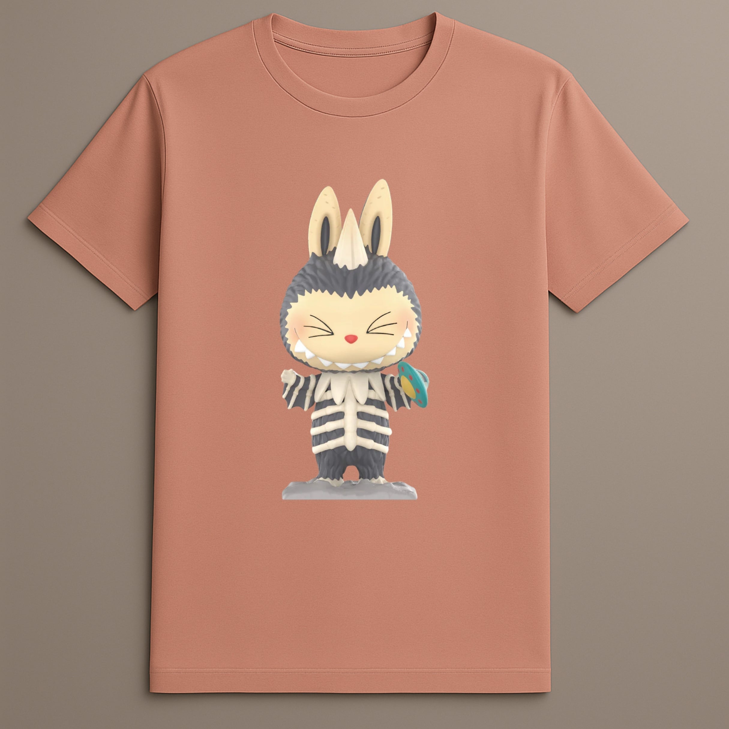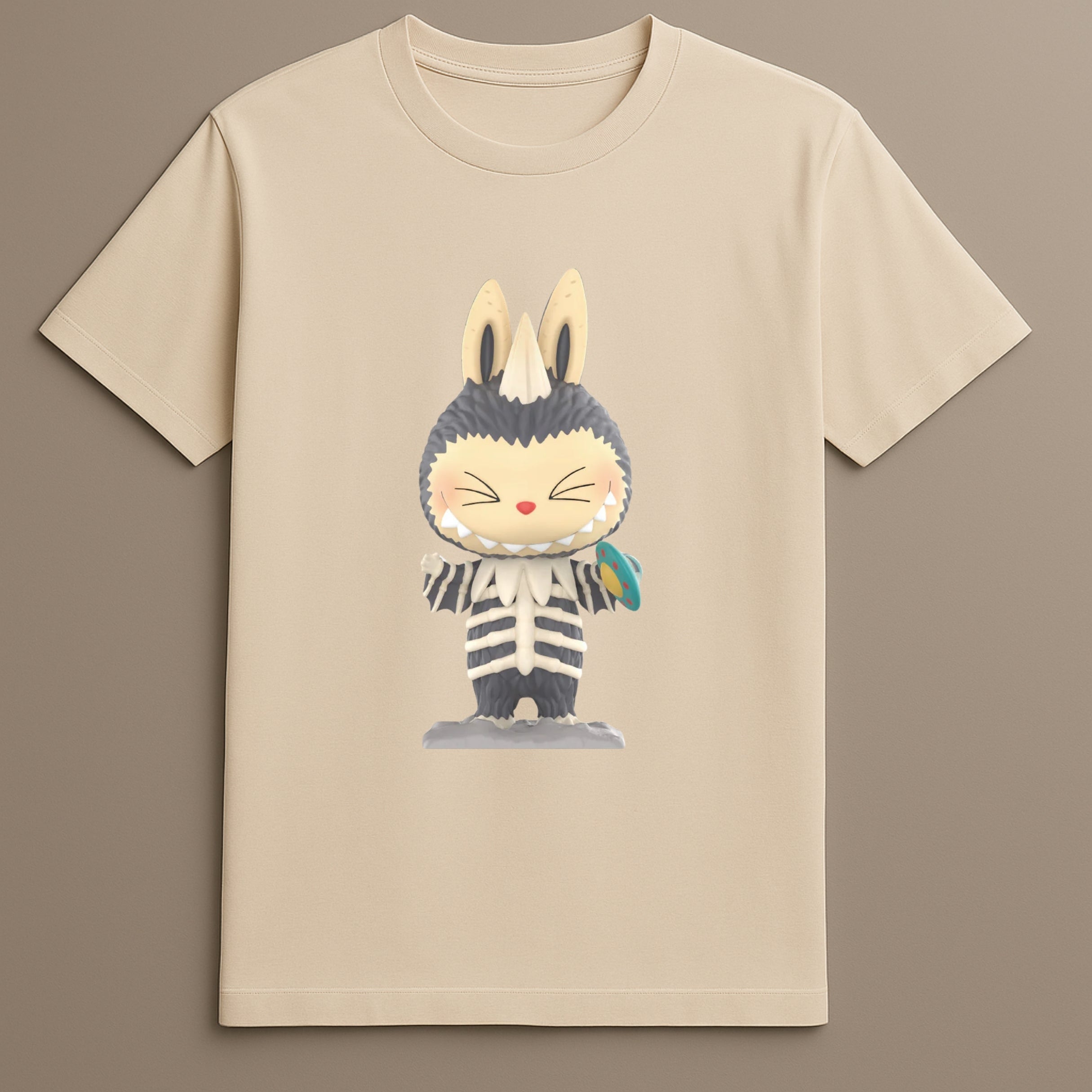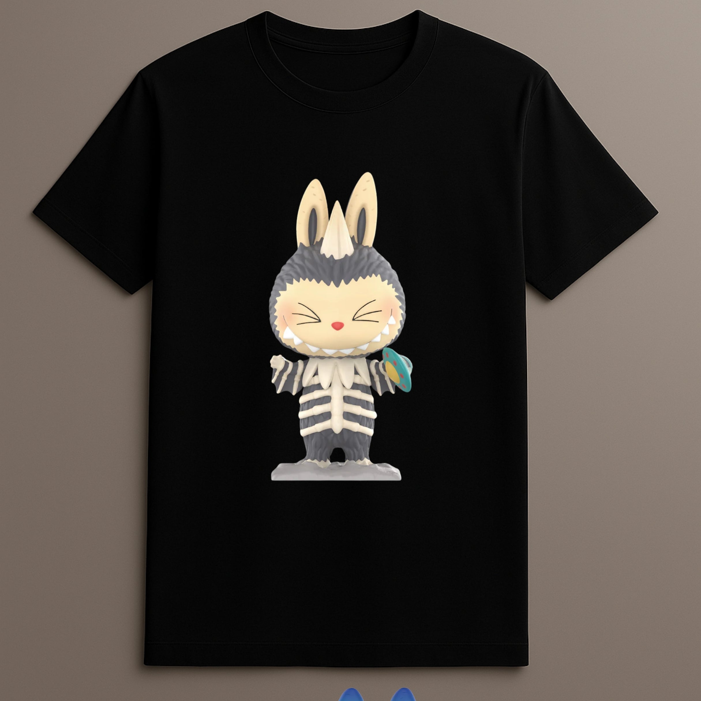 The Labubu Bone Outfit Shirt delivers standout artwork in a wearable format. Featuring a bold central design and structure meant for daily comfort, this shirt is both expressive and easy to wear. The Labubu figure—reimagined in a kaiju-style bone suit—offers graphic interest for those who appreciate character-based fashion without overdoing the detail.