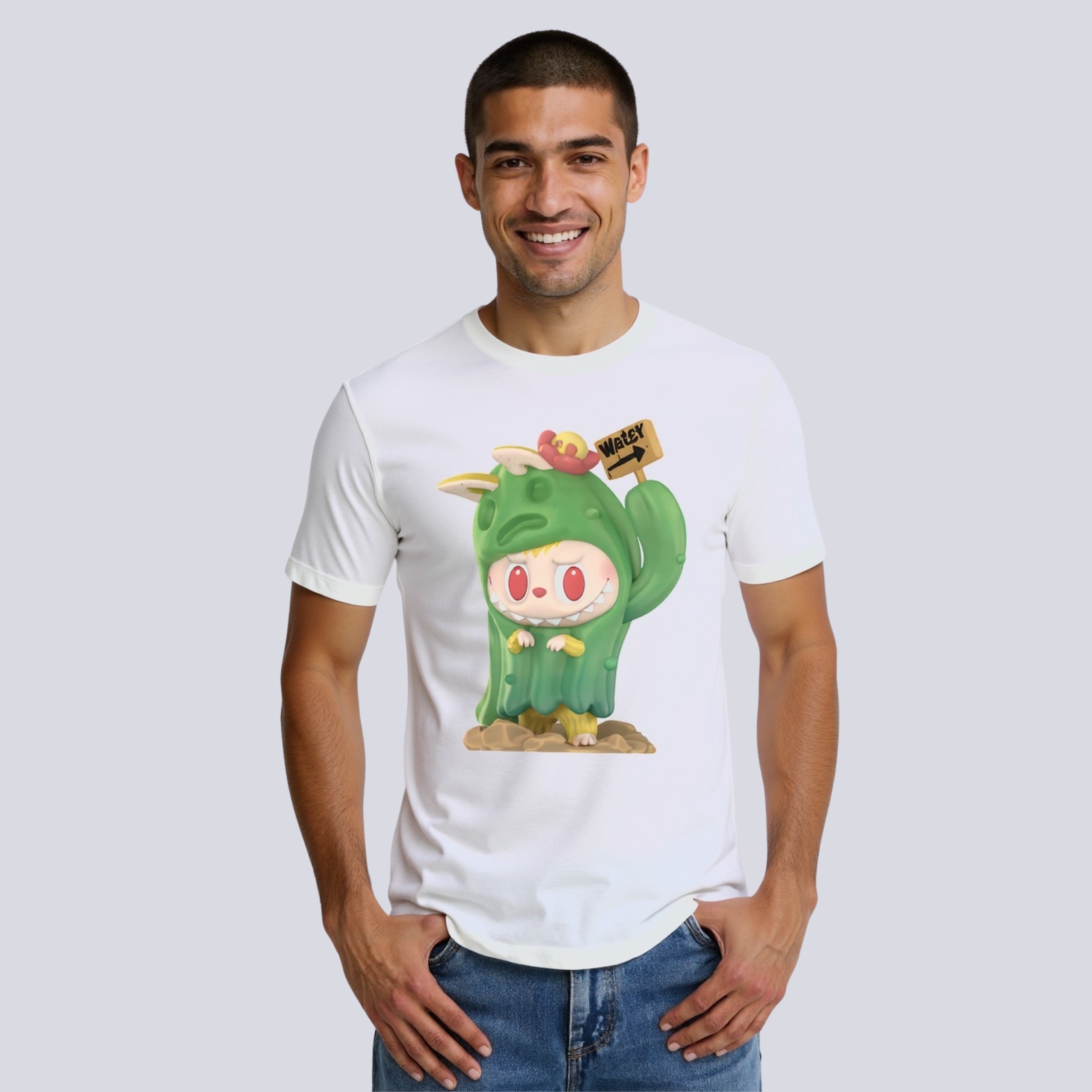 With its gender-neutral cut and storytelling vibe, the Labubu Cactus Bunny T-Shirt appeals to a wide audience, from fashion-forward individuals to those who appreciate pop-art style wearables.