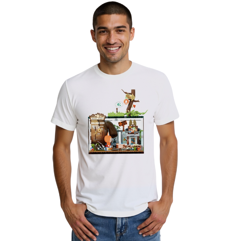 Full-Front Jungle Illustration: The tee features a rich, high-resolution digital design that depicts a forest hideaway filled with Labubu characters, forest gear, plants, and miniature details that invite discovery.