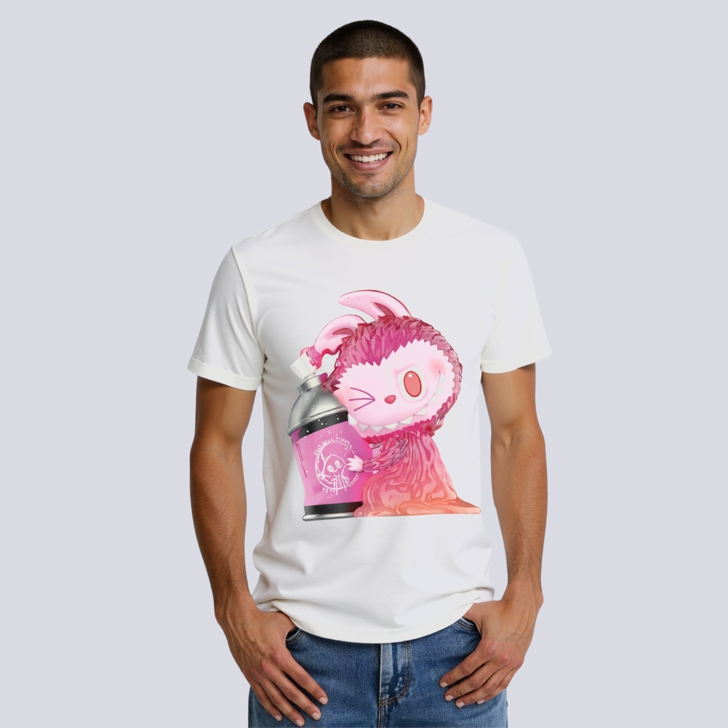 Add a splash of rebellious charm to your casual wear with the Labubu Graffiti Bunny T-Shirt—a design that brings art and attitude together in one imaginative piece. This character-based tee features a stylized Labubu figure mid-spray with a bold can of pink graffiti paint. It’s part playful, part streetwise, and entirely original.