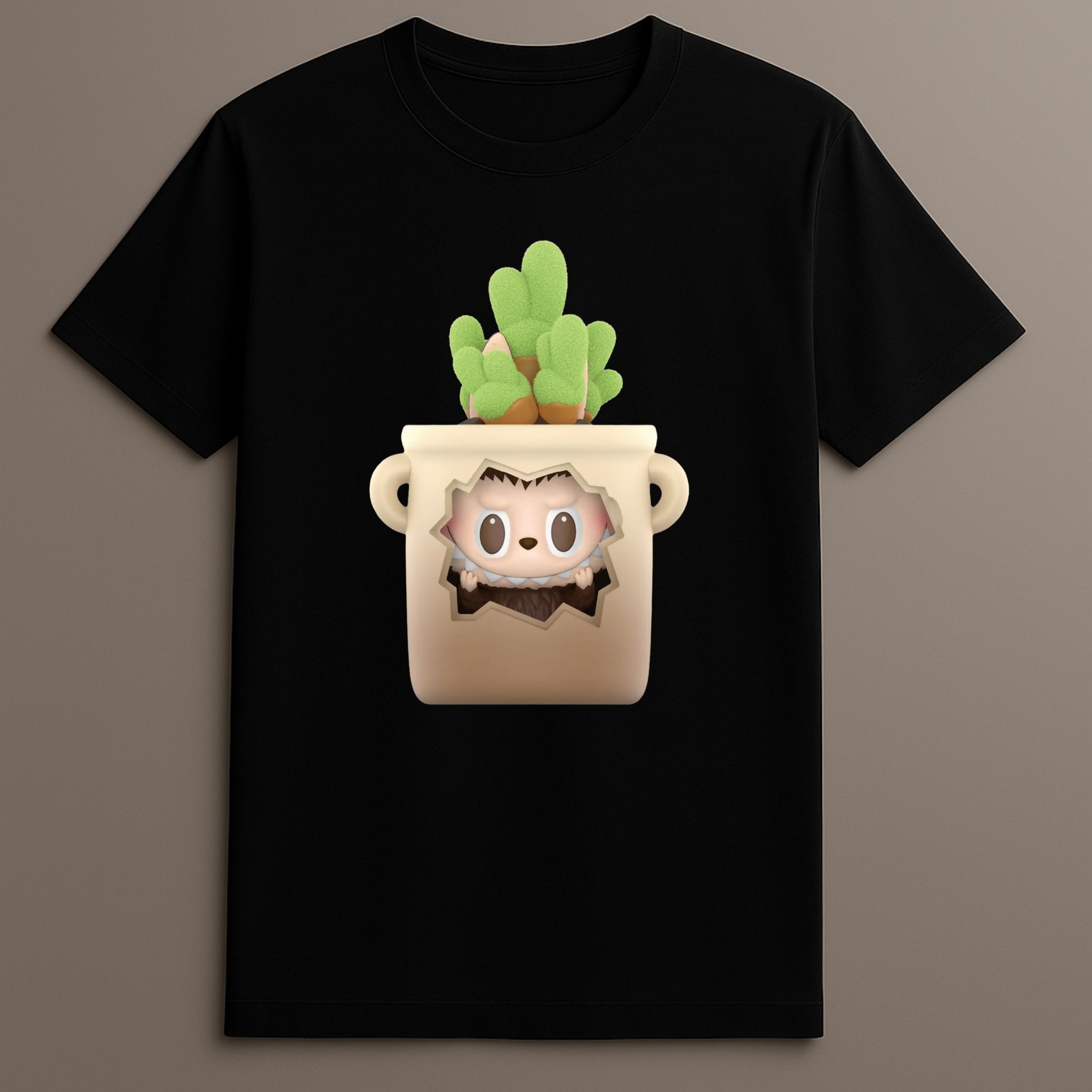 Embrace calm and creativity with the Labubu Hedgehog Pot T-Shirt, a blend of nature themes and character-focused design. This tee centers around a charming, Labubu-style hedgehog nestled within a cracked ceramic pot, surrounded by green succulents and earthy textures. Perfect for fans of botanical aesthetics and whimsical graphics, this shirt adds storybook charm to everyday fashion.