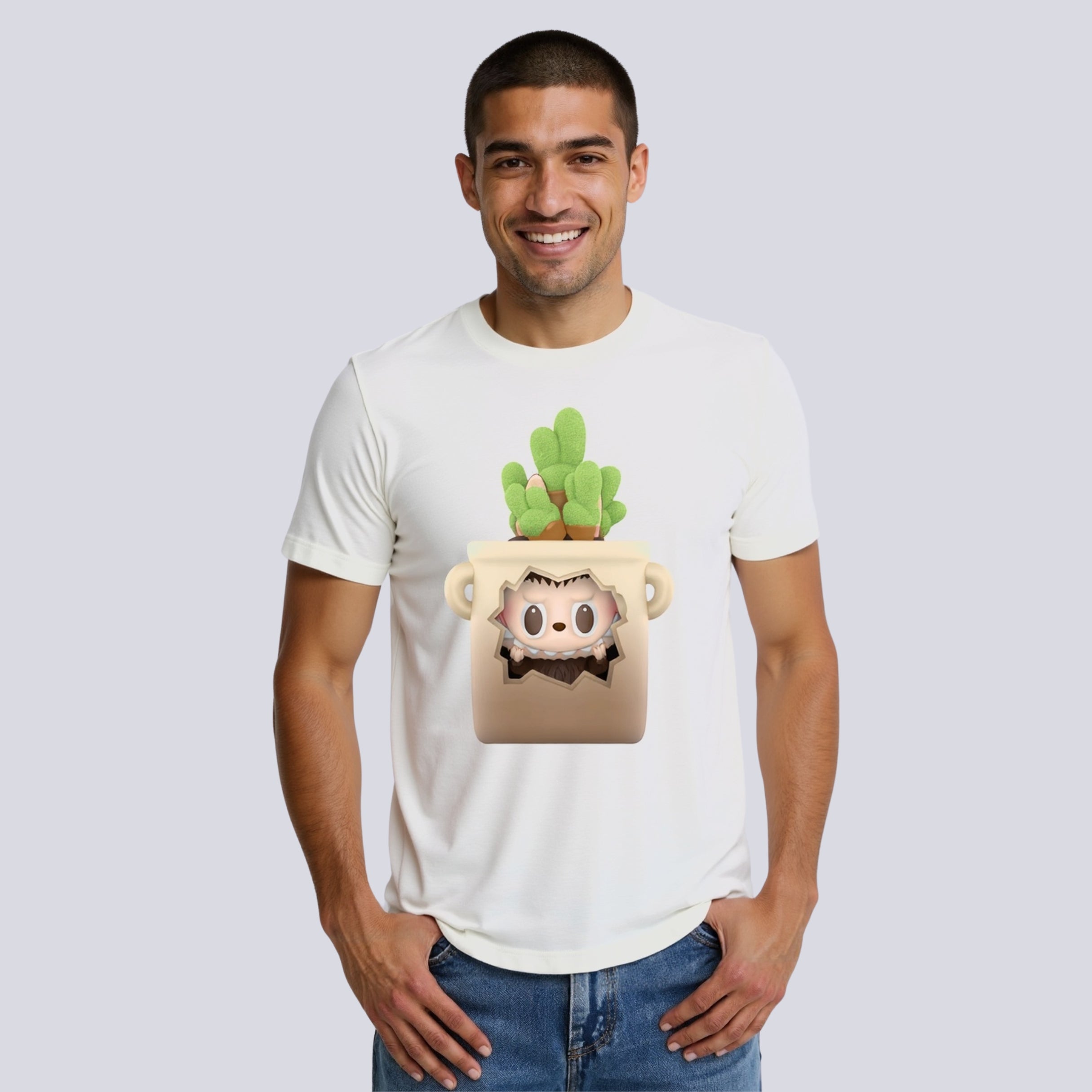 The Labubu Hedgehog Pot T-Shirt fits seamlessly into outfits that prioritize creativity, light-hearted visuals, and personal expression. It works beautifully for: