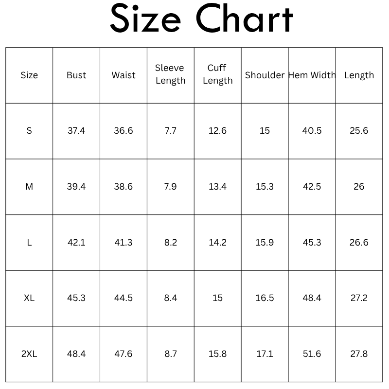 Size Chart (Inches):