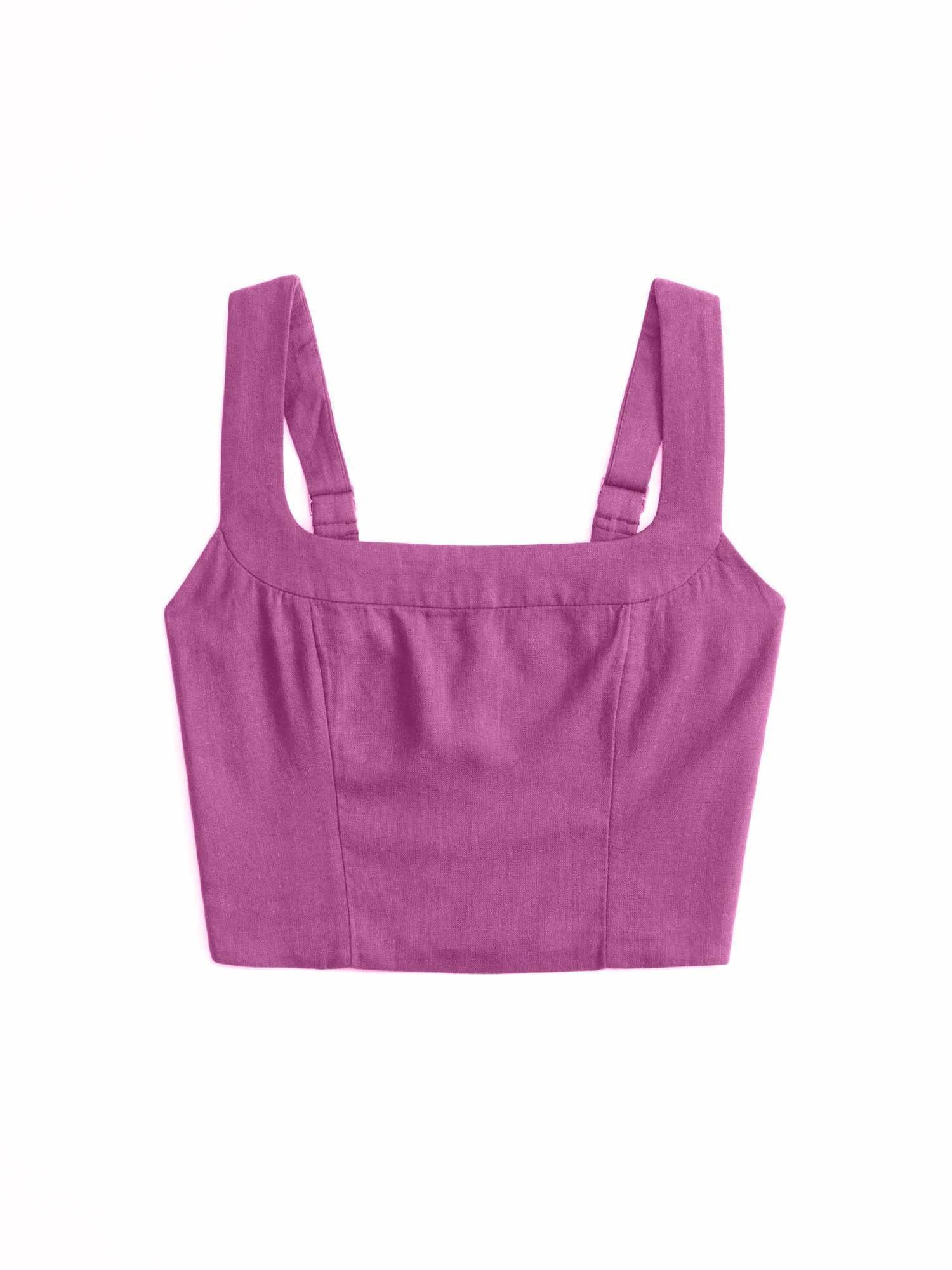 The cropped top features a defined hem and square neckline, allowing for simple pairing or solo wear in warmer conditions.