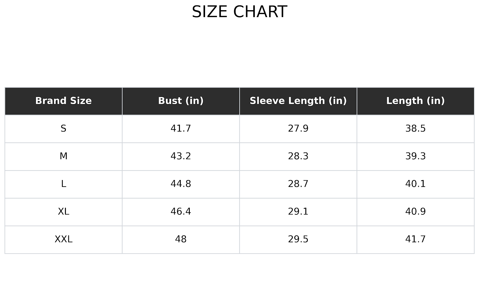 Size Chart(inches):