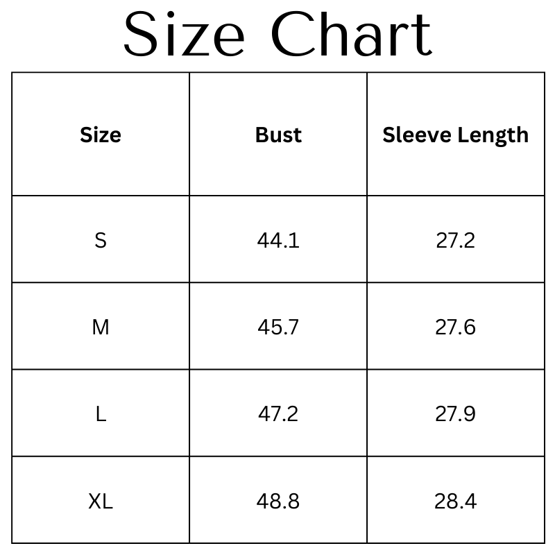 Size Chart (inches):