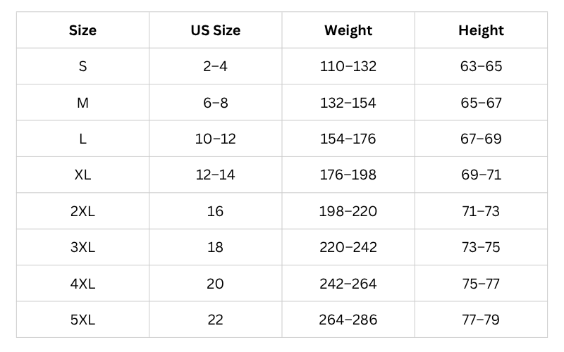 - Fit: Generous roomy fit to accommodate diverse sizes