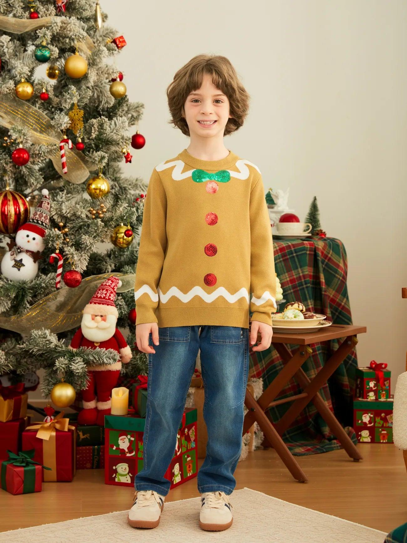 Celebrate the holiday season with matching family outfits featuring whimsical gingerbread man designs. These cozy knit sweaters are perfect for family photos and festive gatherings, ensuring warmth and comfort while bringing a fun, seasonal look to the entire family.
