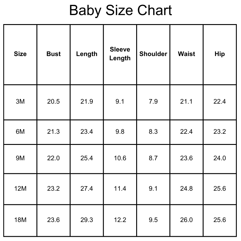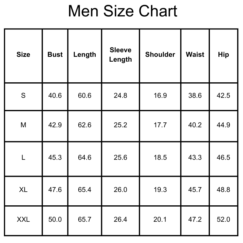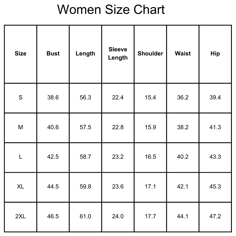 Size Chart(inches):