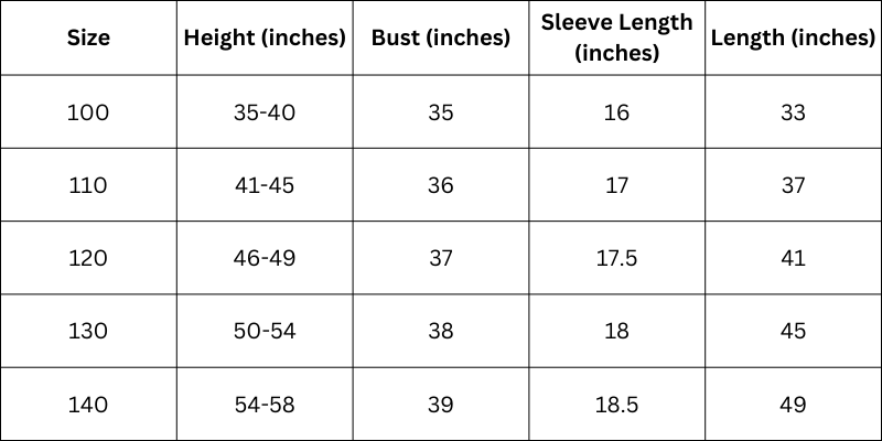 Size Chart (Inches):