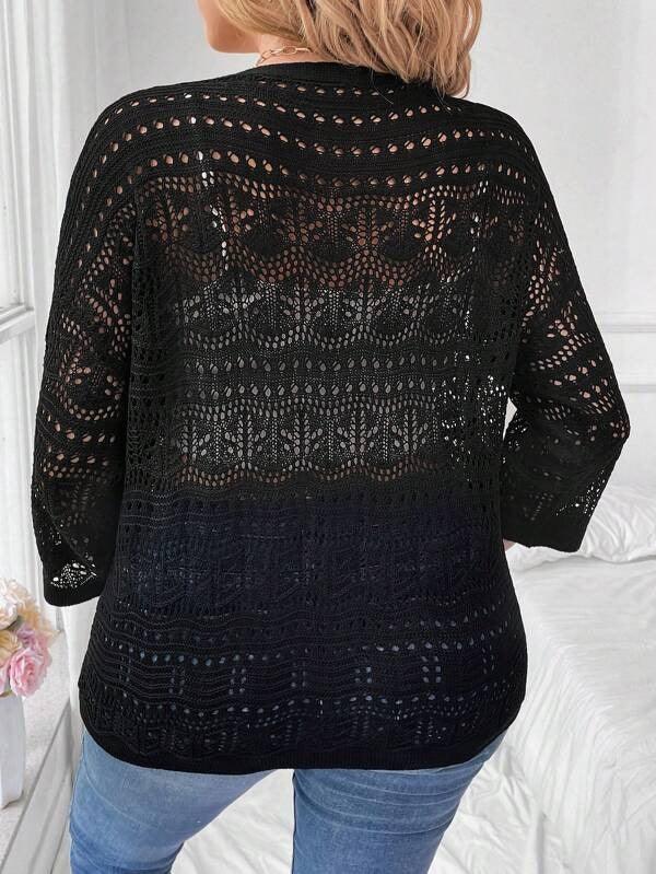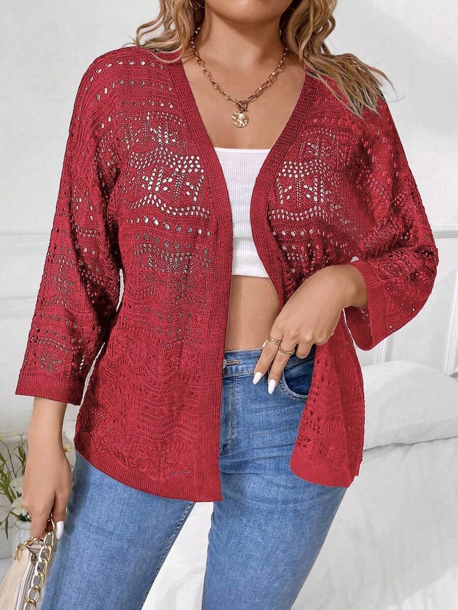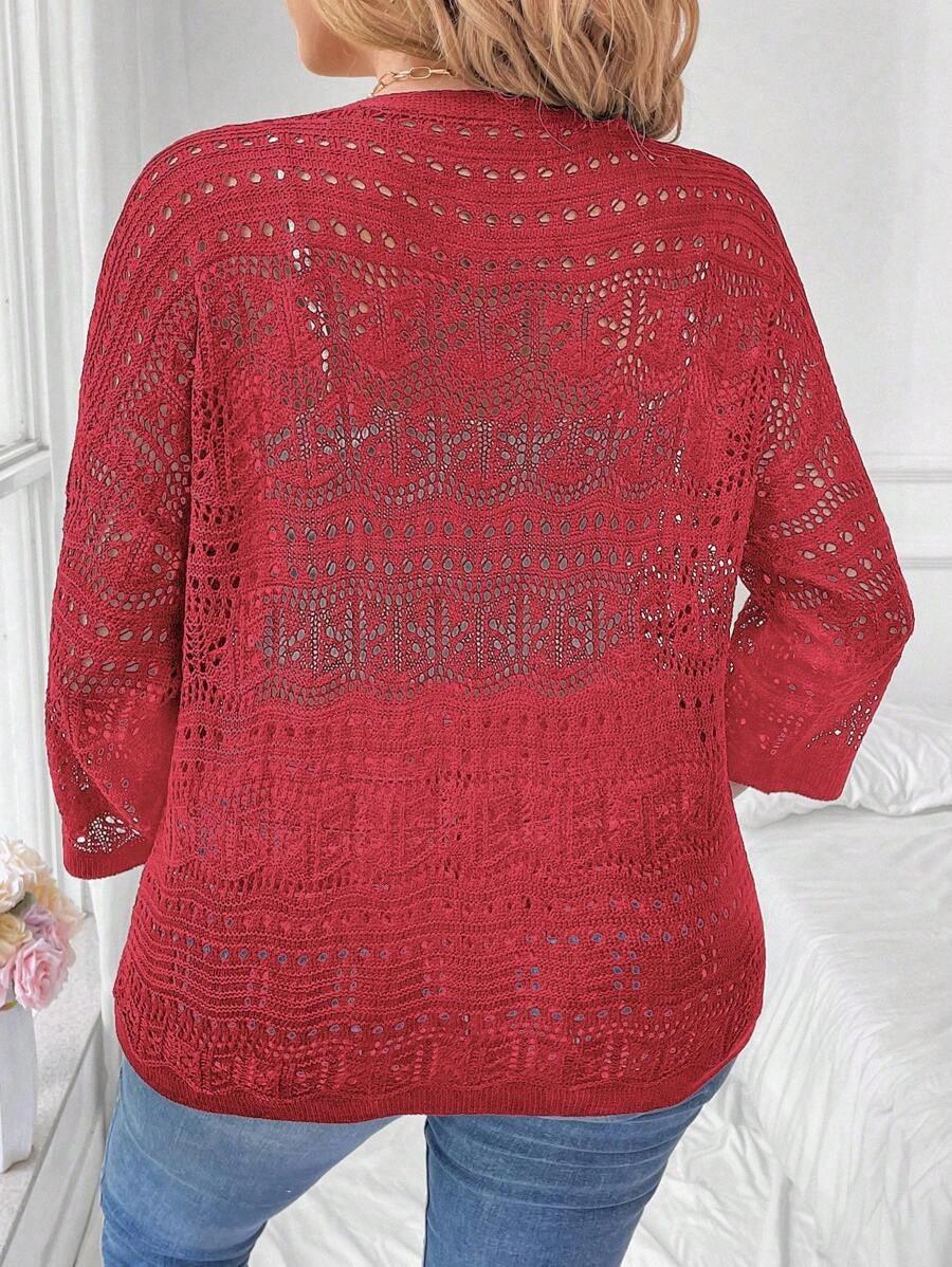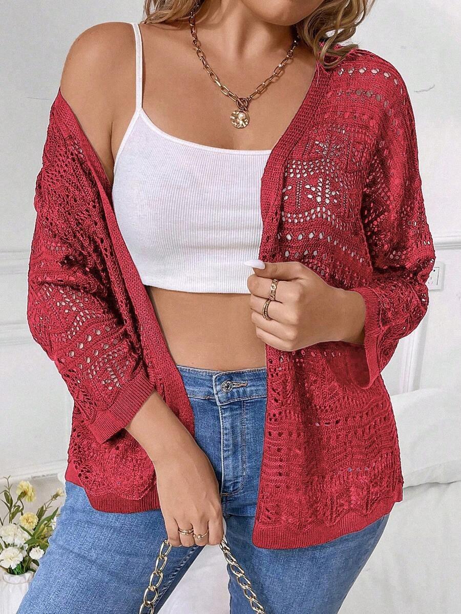 The standout feature is the pointelle knit design—a soft, open-knit pattern that adds visual interest while keeping the garment. This subtle texture elevates a simple cardigan into a chic statement layer.