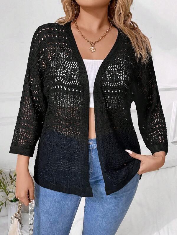 Features of the Pointelle Knit Drop Shoulder Open Front Cardigan