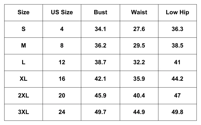 Size Chart: (Inches)