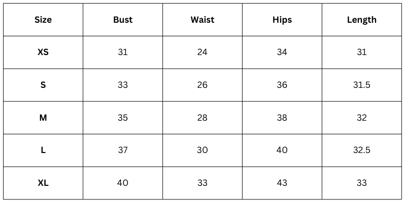 Size Chart (Inches):