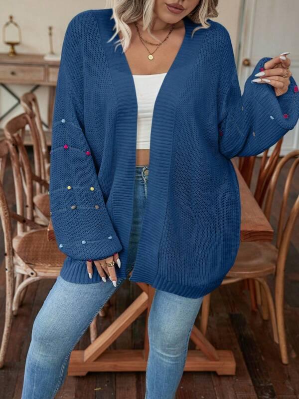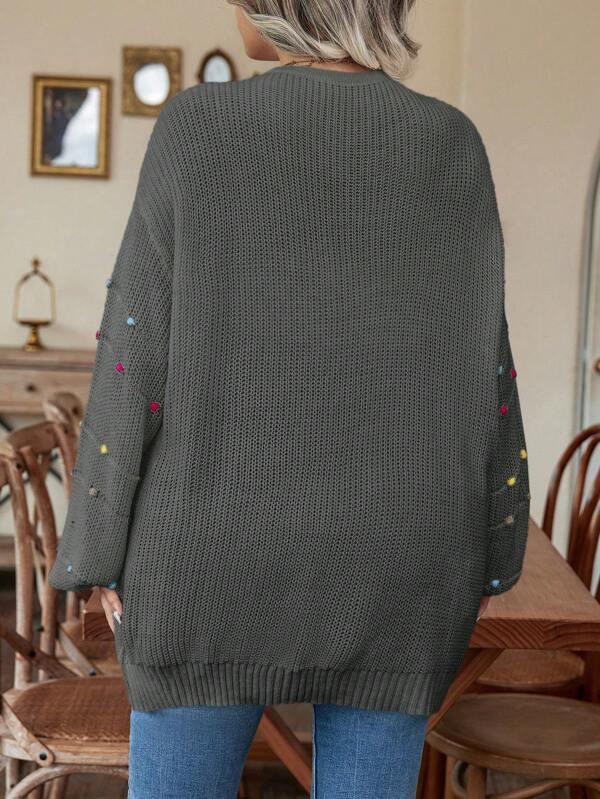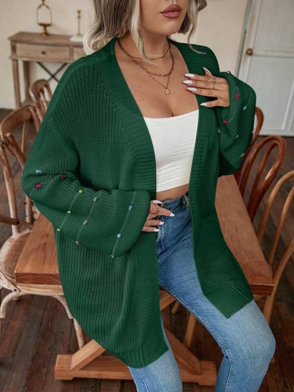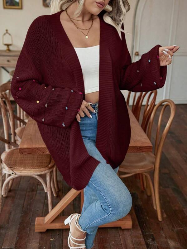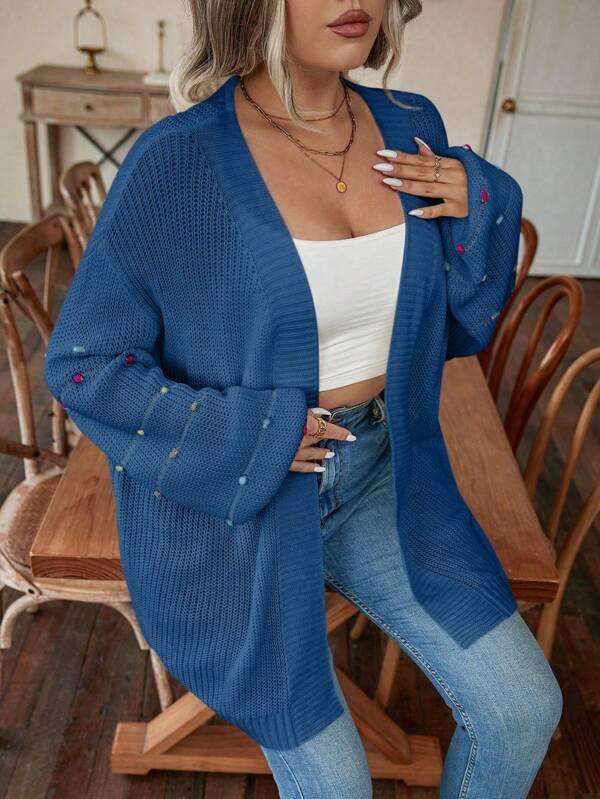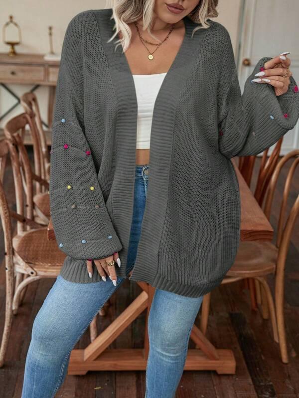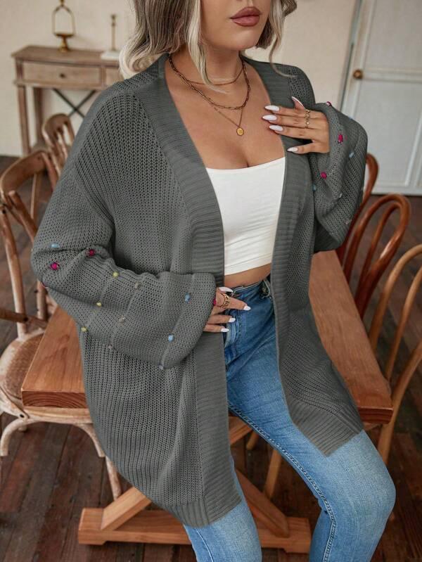 • Design Details: Open front, pearl accents, knit texture