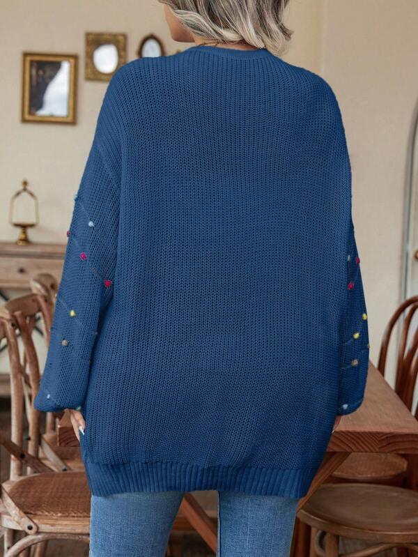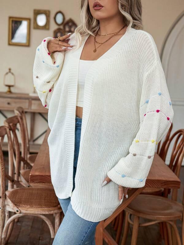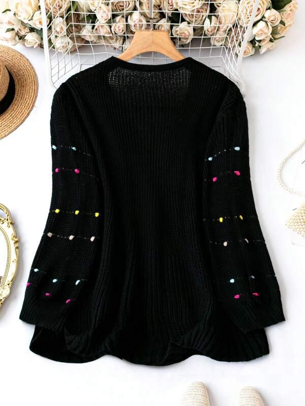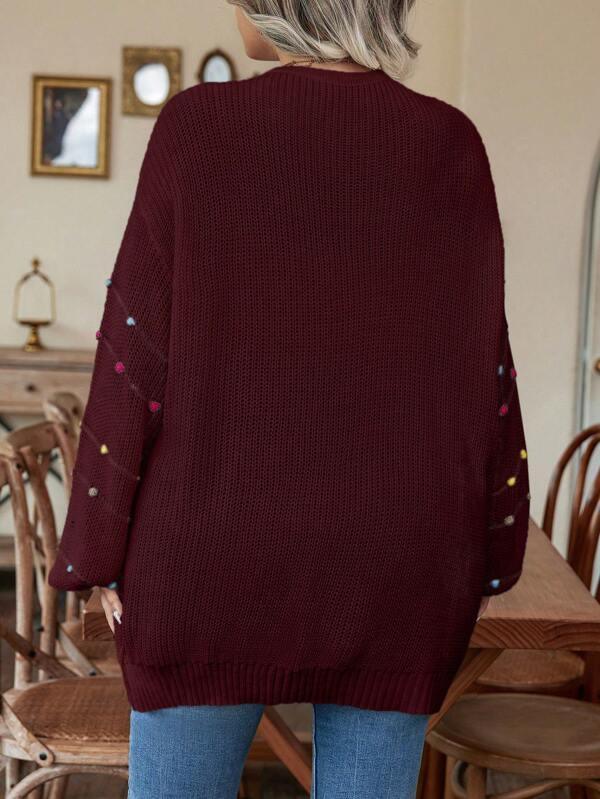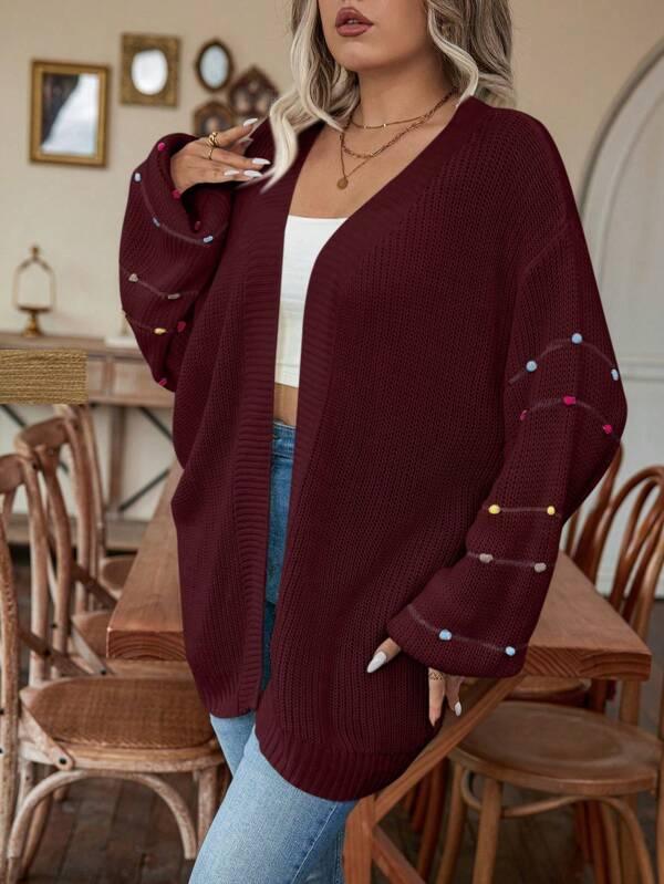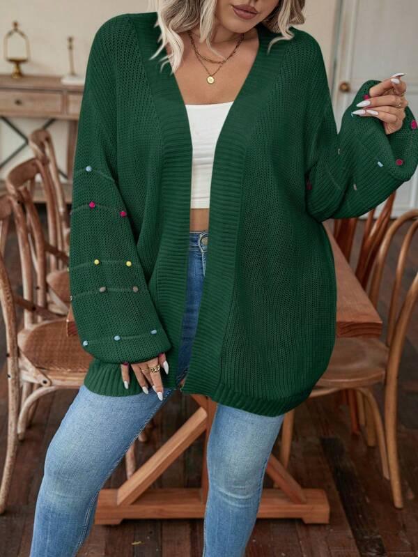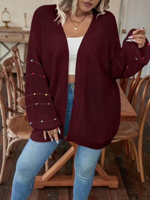 • Design Details: Open front, pearl accents, knit texture