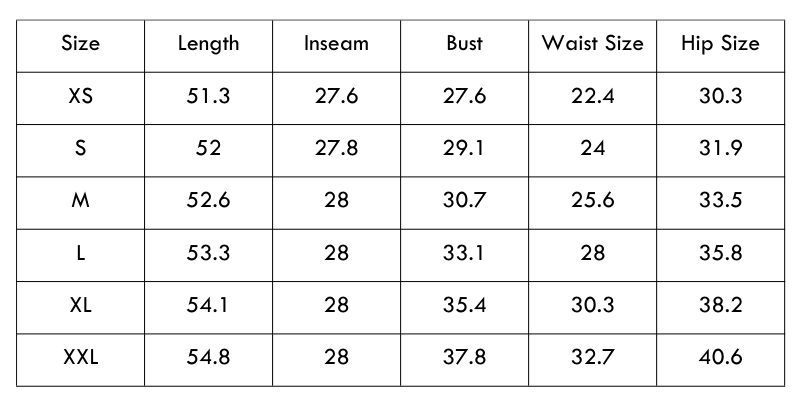 Size Chart (inches):