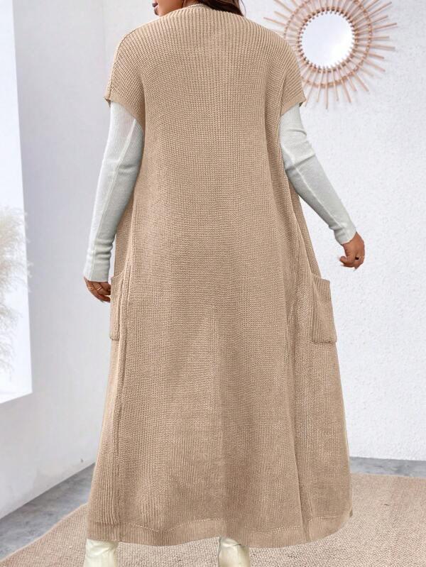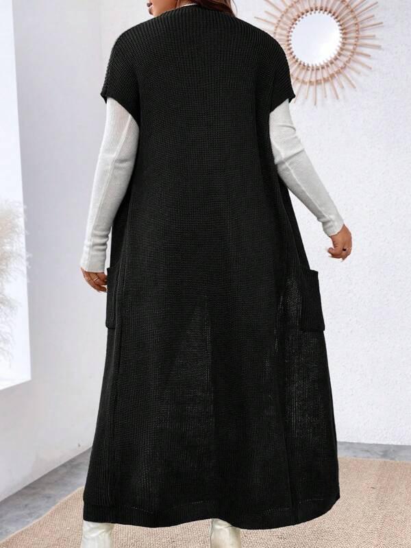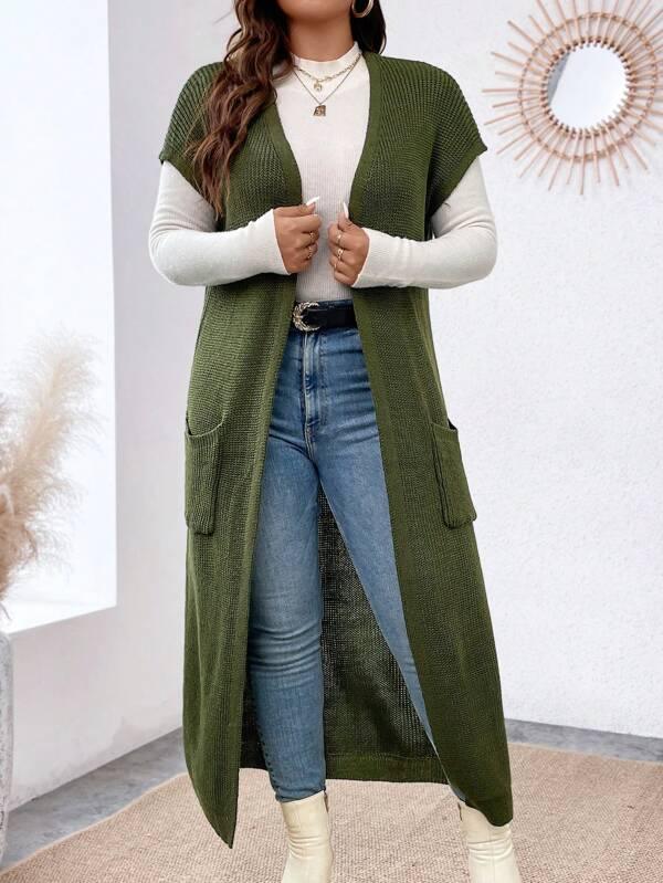 This open front sweater allows fast layering. It can be worn over tops or dresses. There are no zippers or closures.