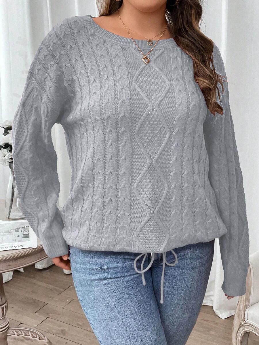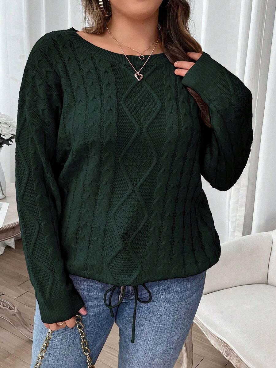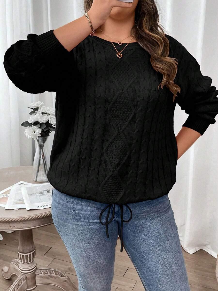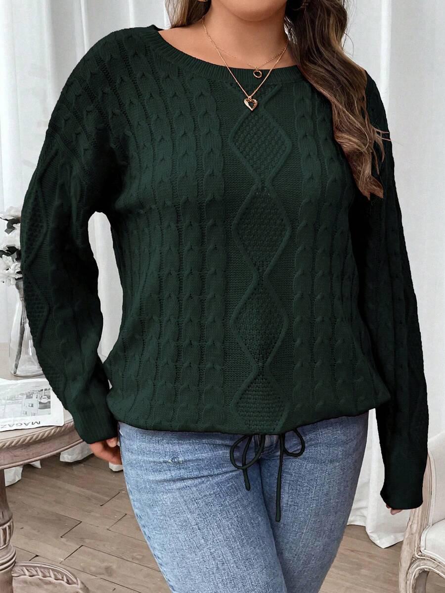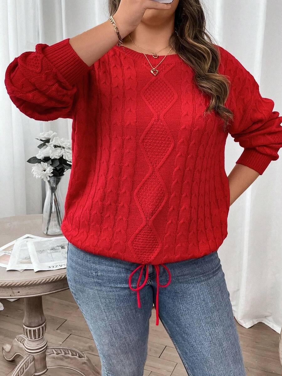Celebrate the holiday season in style with our Plus Christmas Cable Knit Drawstring Hem Sweater. This sweater, featuring a classic cable knit design, exudes festive charm. The drawstring hem allows you to adjust for a personalized fit, making it a cozy and versatile addition to your winter wardrobe. This beautifully designed sweater with its festive cable knit pattern is perfect for holiday parties or casual outings.