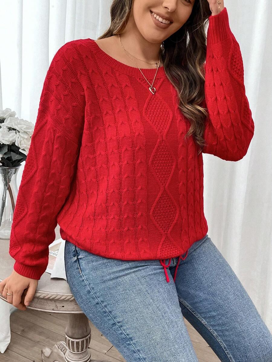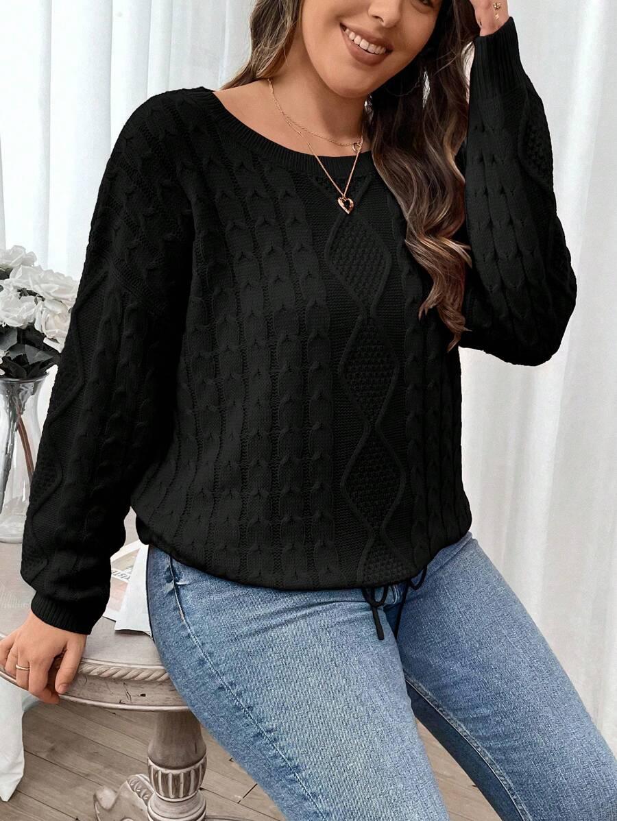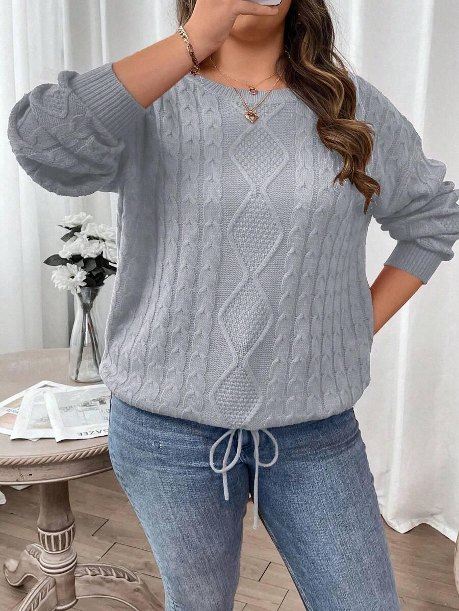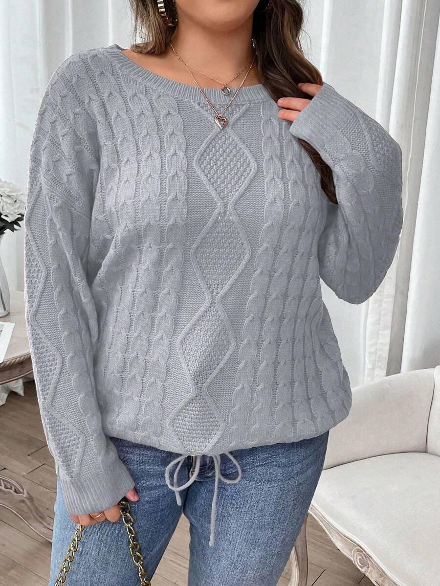 Celebrate the holiday season in style with our Plus Christmas Cable Knit Drawstring Hem Sweater. This sweater, featuring a classic cable knit design, exudes festive charm. The drawstring hem allows you to adjust for a personalized fit, making it a cozy and versatile addition to your winter wardrobe. This beautifully designed sweater with its festive cable knit pattern is perfect for holiday parties or casual outings.