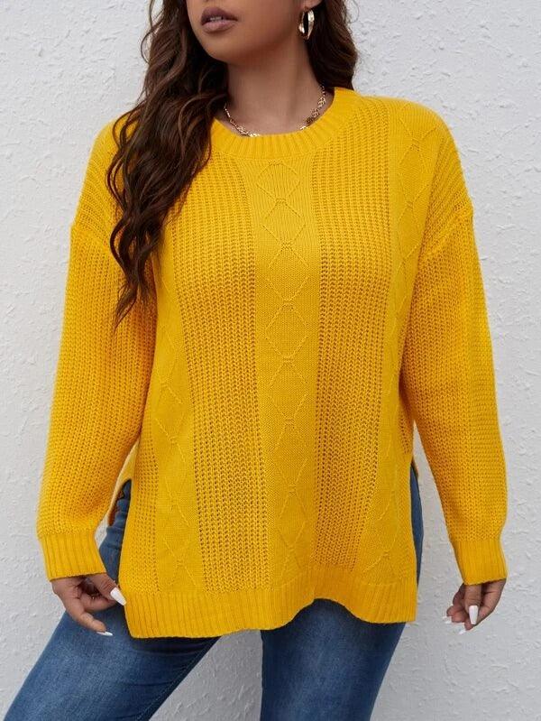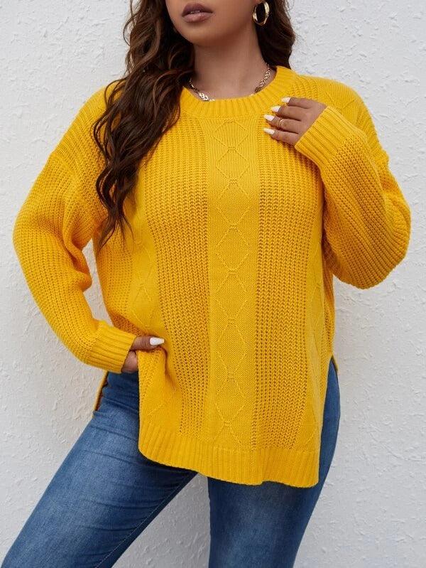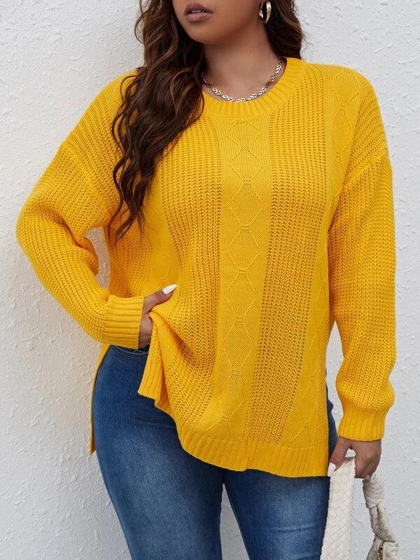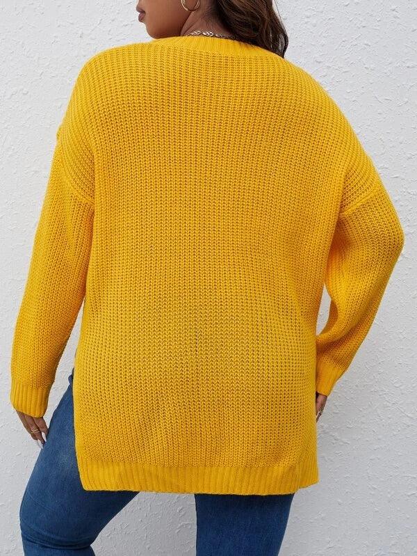 Comfort meets timeless design in the Plus Drop Sleeve Sweater, a staple piece crafted for daily wear and versatile layering. Whether you're stepping out or staying in , this sweater brings together a soft knit feel, thoughtful detailing, and a flattering silhouette made to fit and move with you. With its casual drop shoulder design and modern split hem, this piece strikes a balance between classic simplicity and everyday functionality.