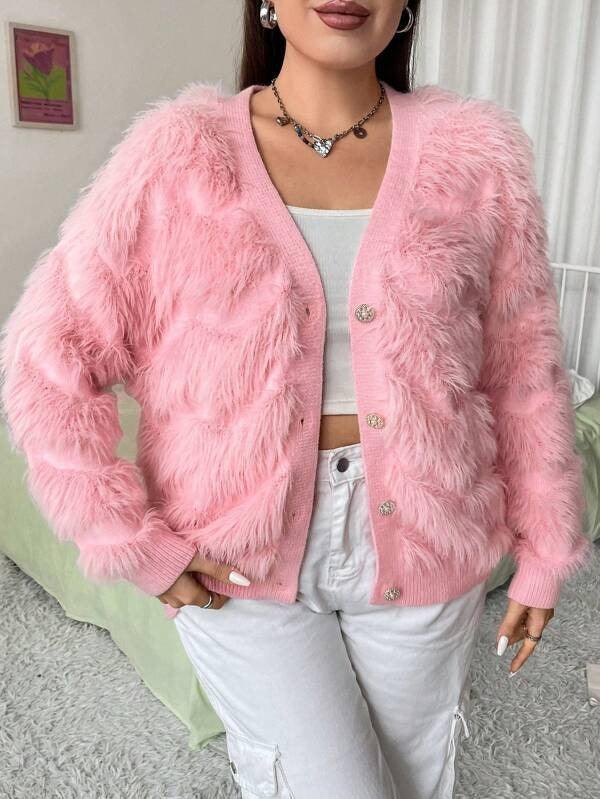 Elevate your cold-weather wardrobe with the Plus Fuzzy Drop Shoulder Cardigan, a stylish yet functional knitwear designed for comfort and fashionable layering. Made from soft knit fabric with a fuzzy texture, this cardigan wraps you in warmth while maintaining a light, feel. It’s the perfect fusion of coziness and effortless chic, tailored especially for plus-size comfort .
