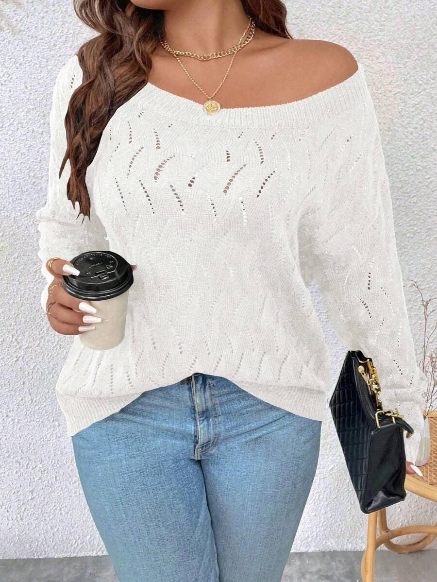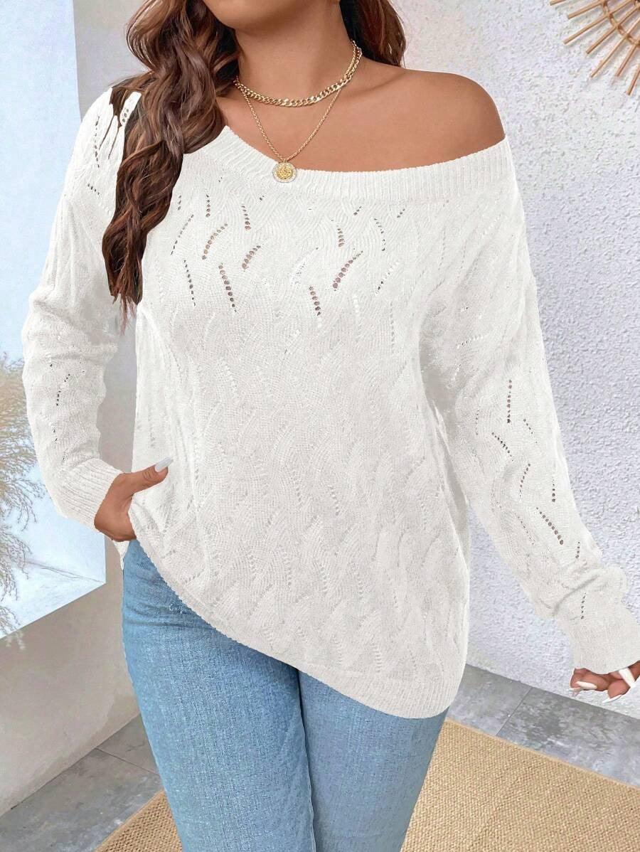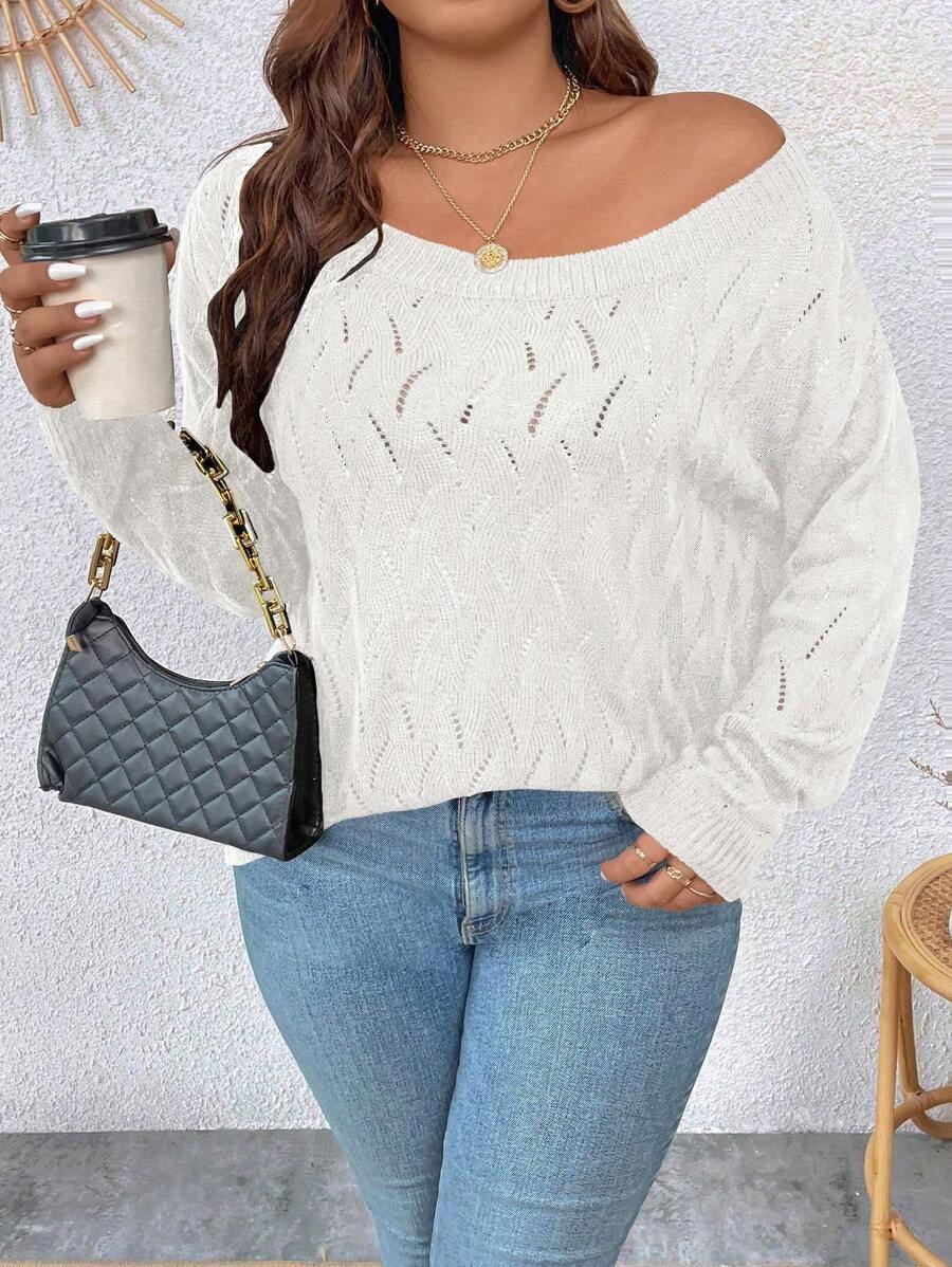 Indulge in the sheer elegance and exquisite craftsmanship of our Plus Pointelle Knit Sweater, a piece that seamlessly marries comfort and style. Crafted with meticulous attention to detail, this sweater is a masterful work of art in the world of fashion. Elevate your style effortlessly with the Plus Pointelle Knit Sweater, an epitome of tasteful refinement that will leave you feeling both confident and comfortable.